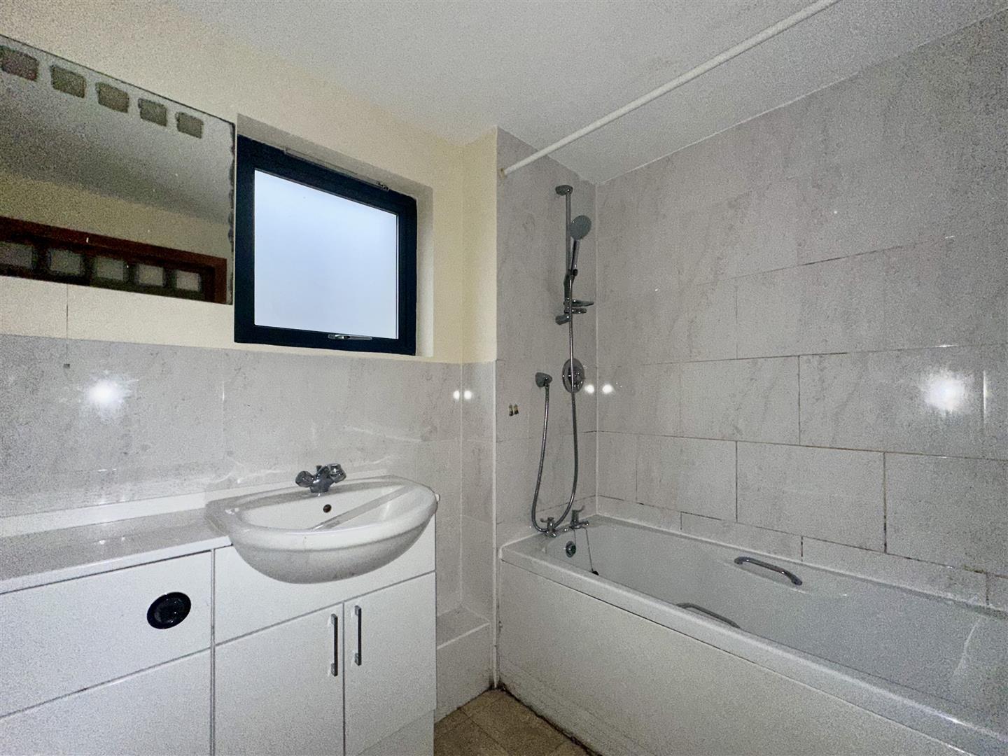 Bathroom - White suite comprising bath with shower over, vanity wash hand basin, low level w.c., upvc double glazed opaque window to side elevation.