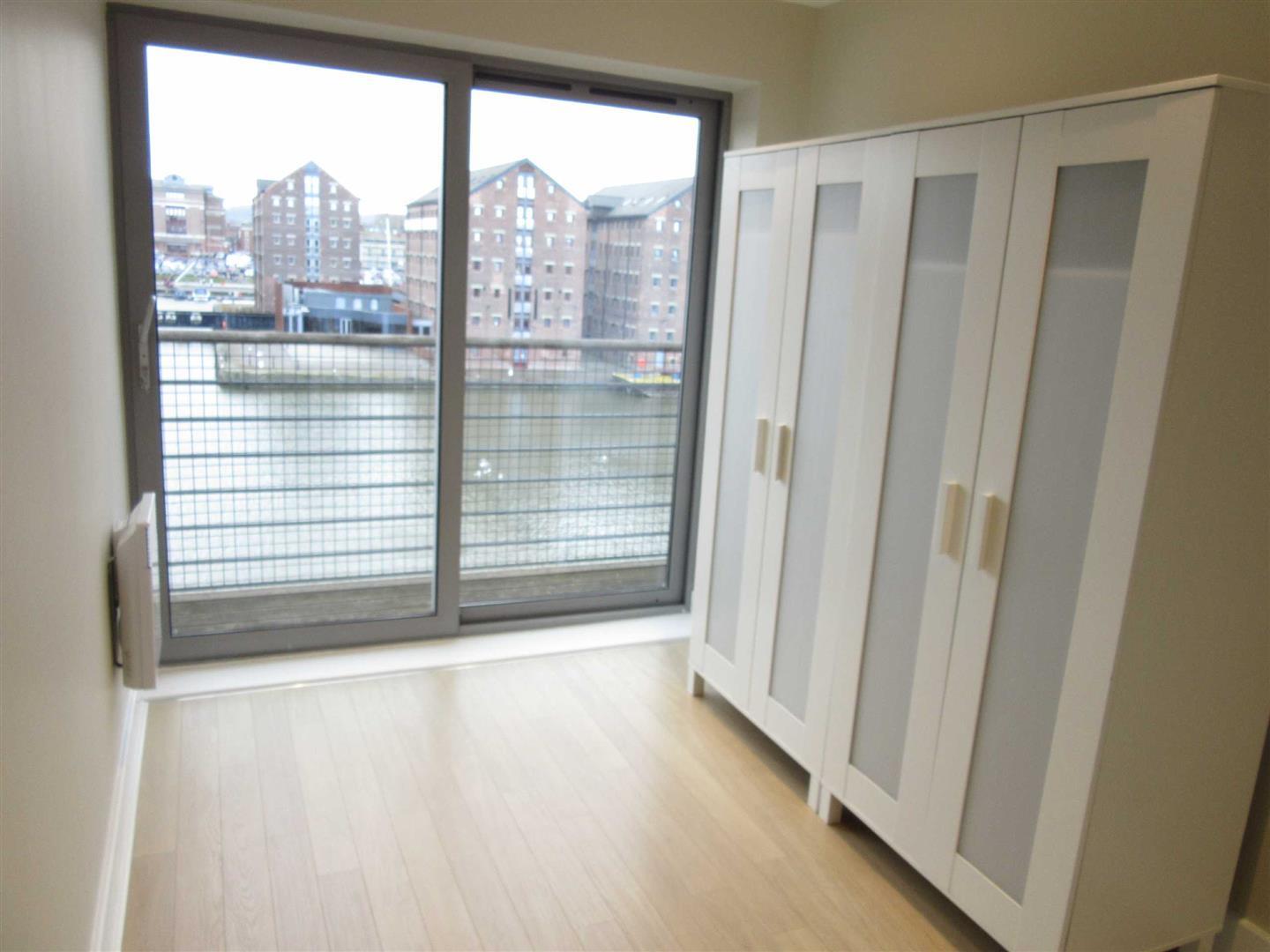 Bedroom 1 - 3.63m x 2.57m (11'11 x 8'5) - Built in storage cupboard, electric heater, tv point, telephone point, double glazed window to front elevation overlooking the docks, through to: