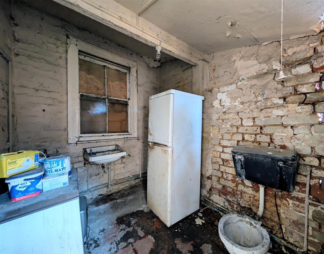 Former Wash House - 2.59m x 2.18m (8'6 x 7'2) - Wash hand basin, window to front elevation which is currently boarded, low level w.c.