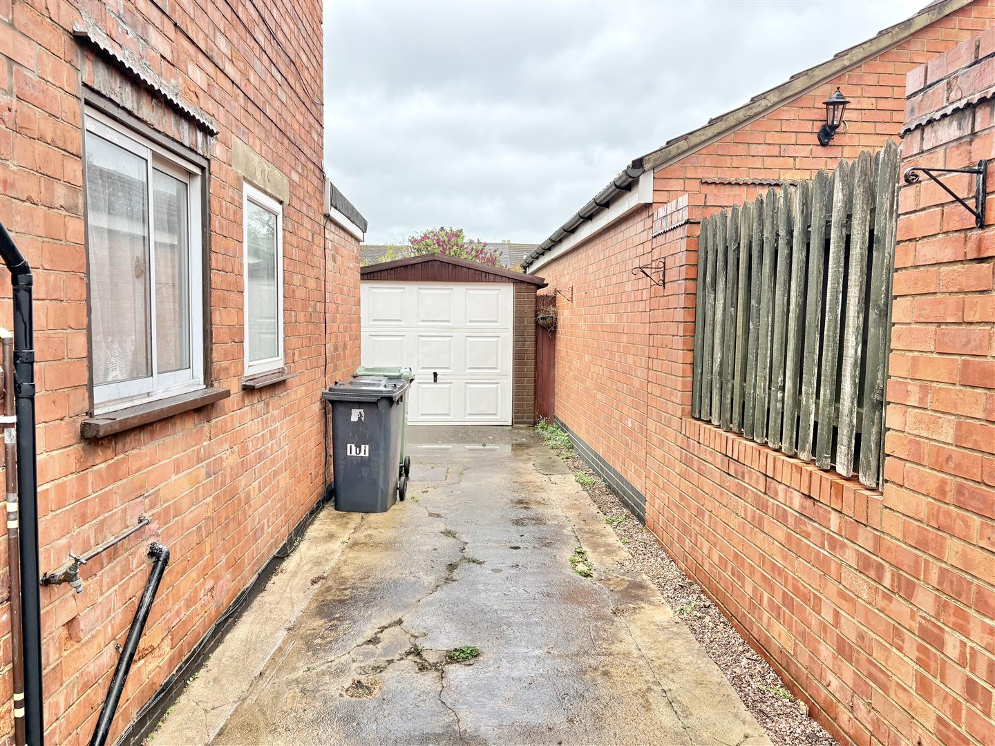 Outside - To the front a tarmacadam driveway provides off road parking for two vehicles, has a lawned area and double gates gives access to the detached garage.