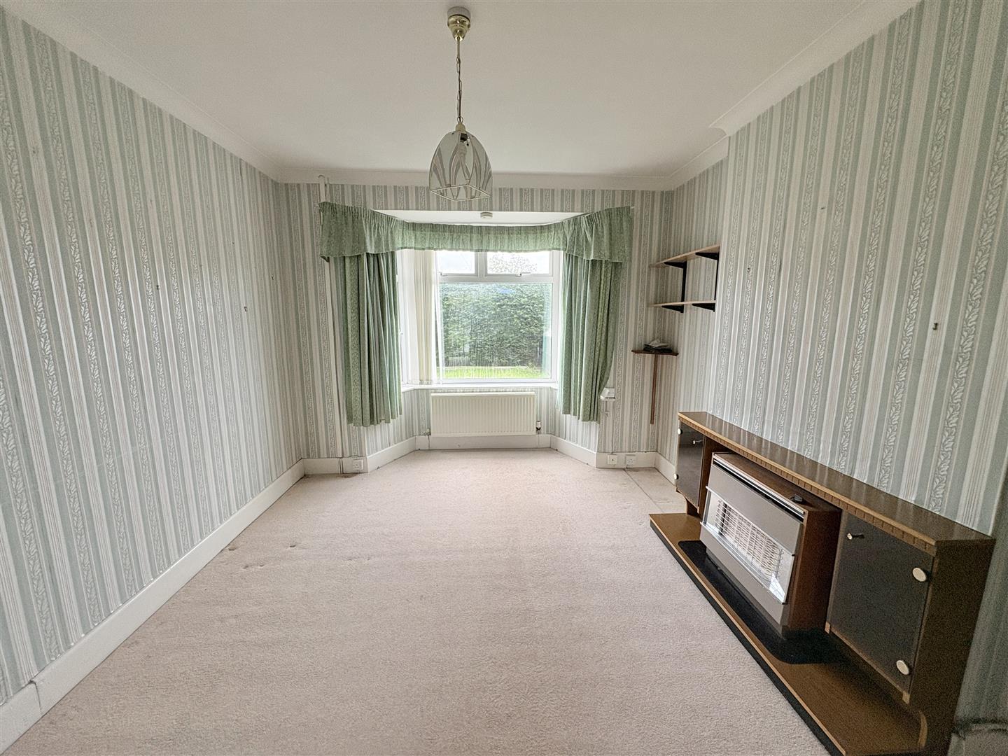 Lounge - 3.65m x 3.34m (11'11" x 10'11" ) - Power points, radiator, upvc double glazed bay window overlooking the front garden, wooden Georgian style doors lead into: