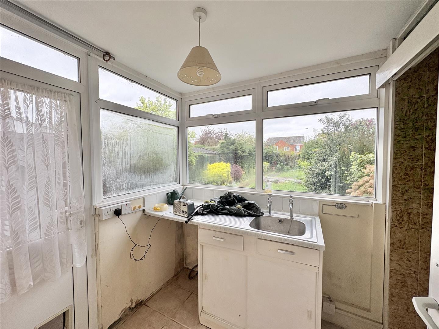 Utility Room - 2m x 1.90m (6'6" x 6'2" ) - Base unit, roll edge worksurface, stainless steel sink and drainer unit, space and plumbing for automatic washing machine, upvc double glazed part glazed door to the side gardens, three upvc double glazed windows overlooking the side and rear gardens, sliding door into:
