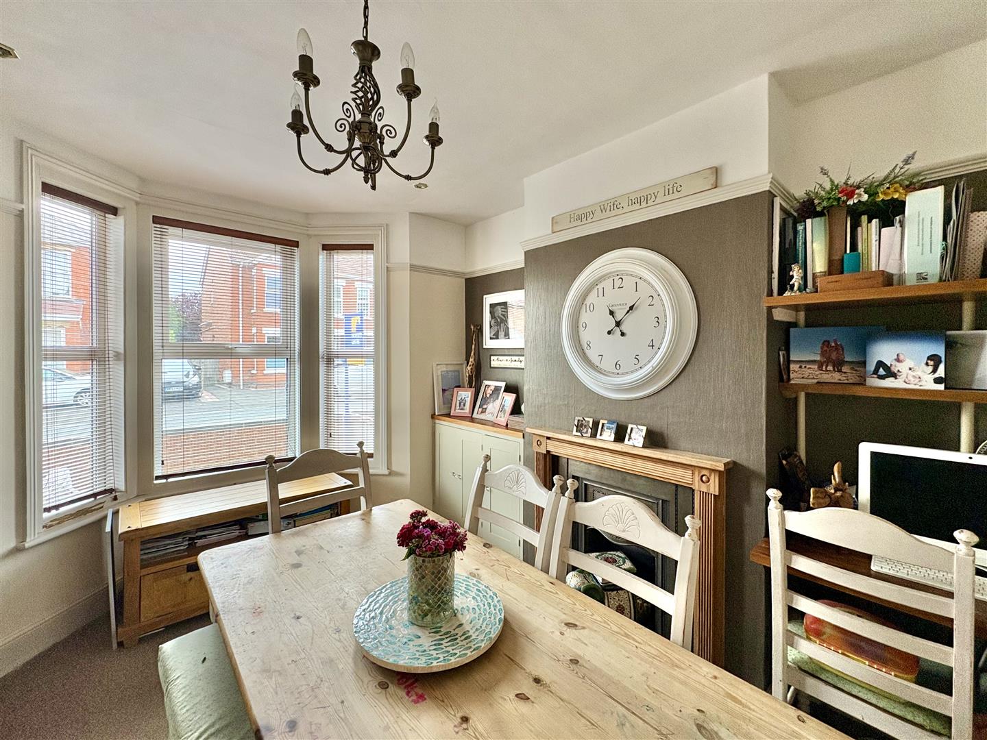 Dining Room - 3.47m x 3.32m (11'4" x 10'10" ) - Ornate cast iron fireplace with wooden surround and tiled hearth, built in storage cupboards, radiator, upvc double glazed bay window to front aspect.