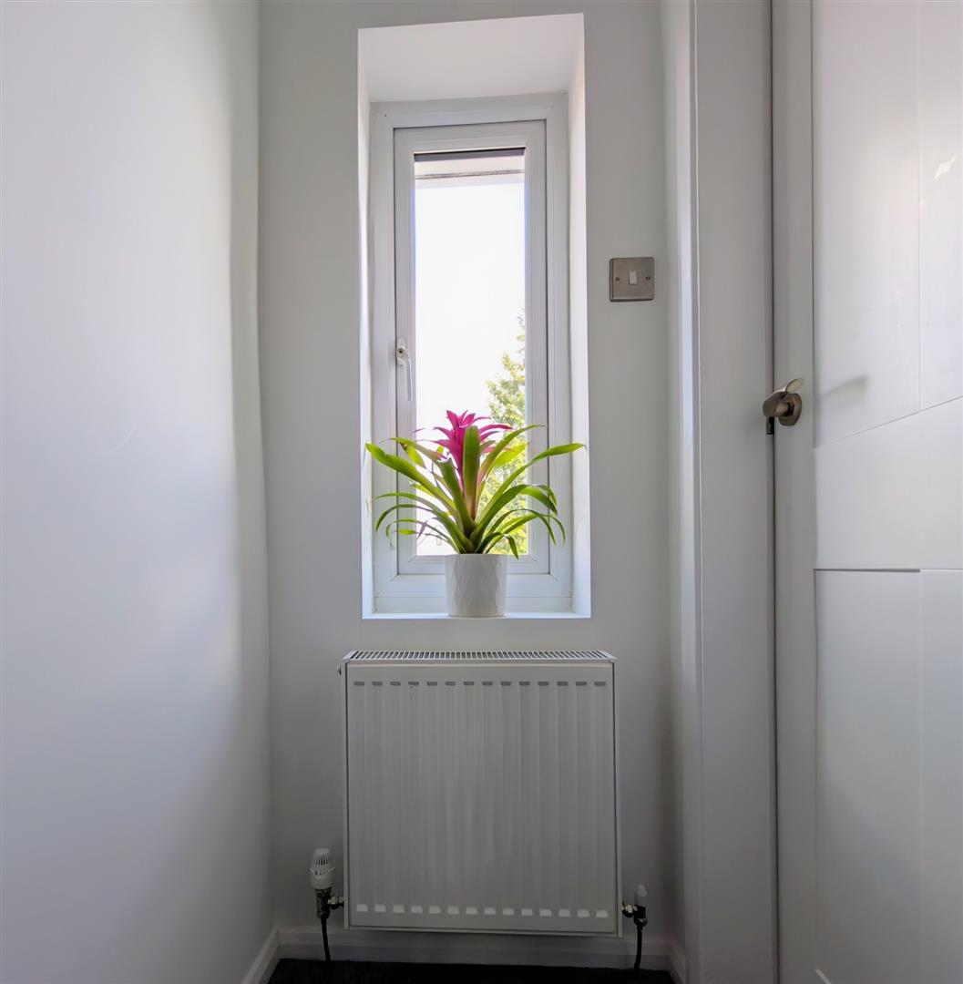 Utility Room - 2.21m x 1.37m max (7'3 x 4'6 max) - Plumbing for automatic washing machine, laminated worksurface, base unit, tiled floor, chrome heated towel rail, extractor fan, upvc double glazed window to side elevation.