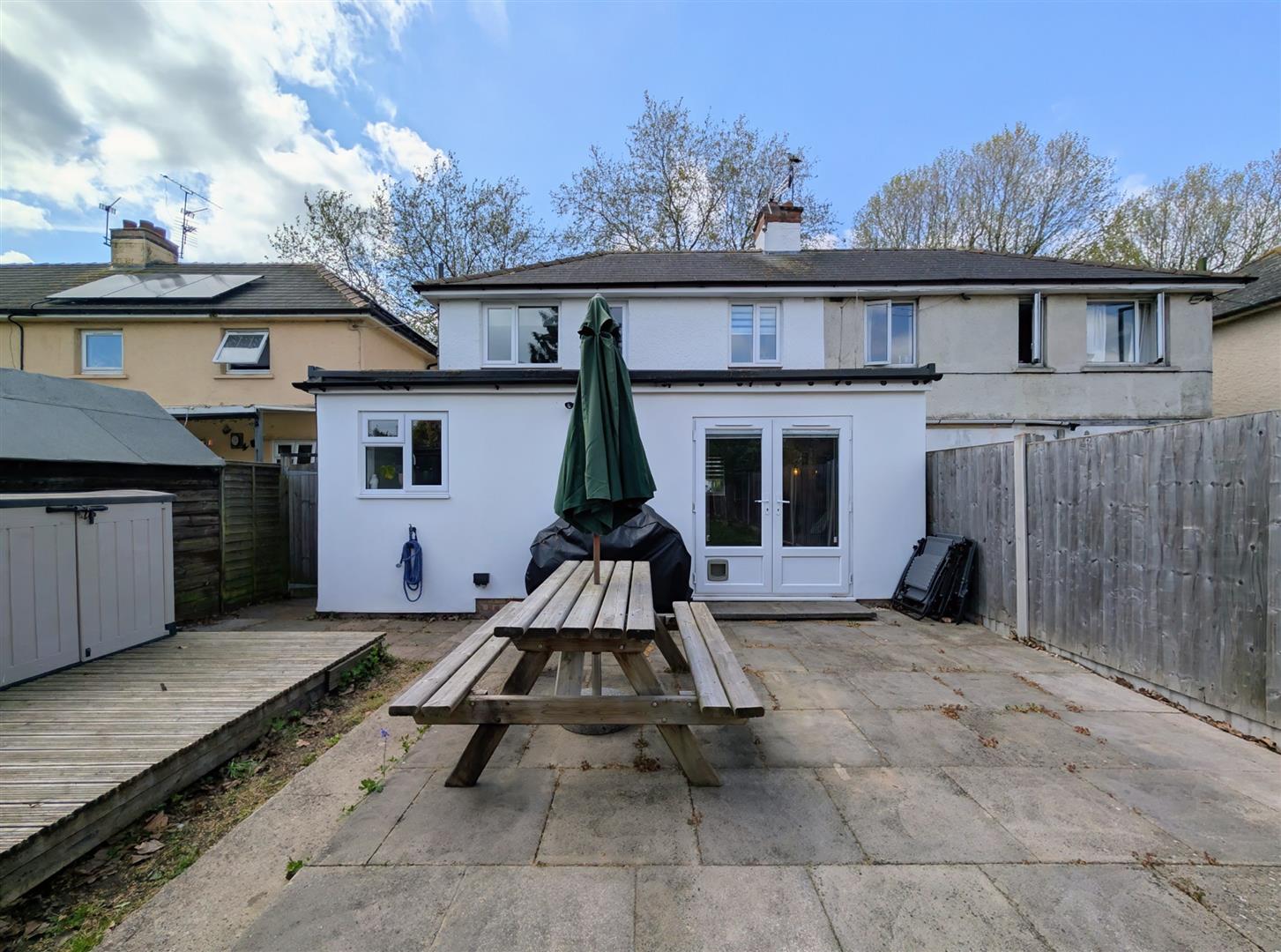 EXTENDED BEAUTIFULLY PRESENTED three bedroom semi detached house with a 20FT FITTED KITCHEN/DINER that has French doors onto the garden and a 60FT ENCLOSED REAR GARDEN situated opposite a green/playing fields.