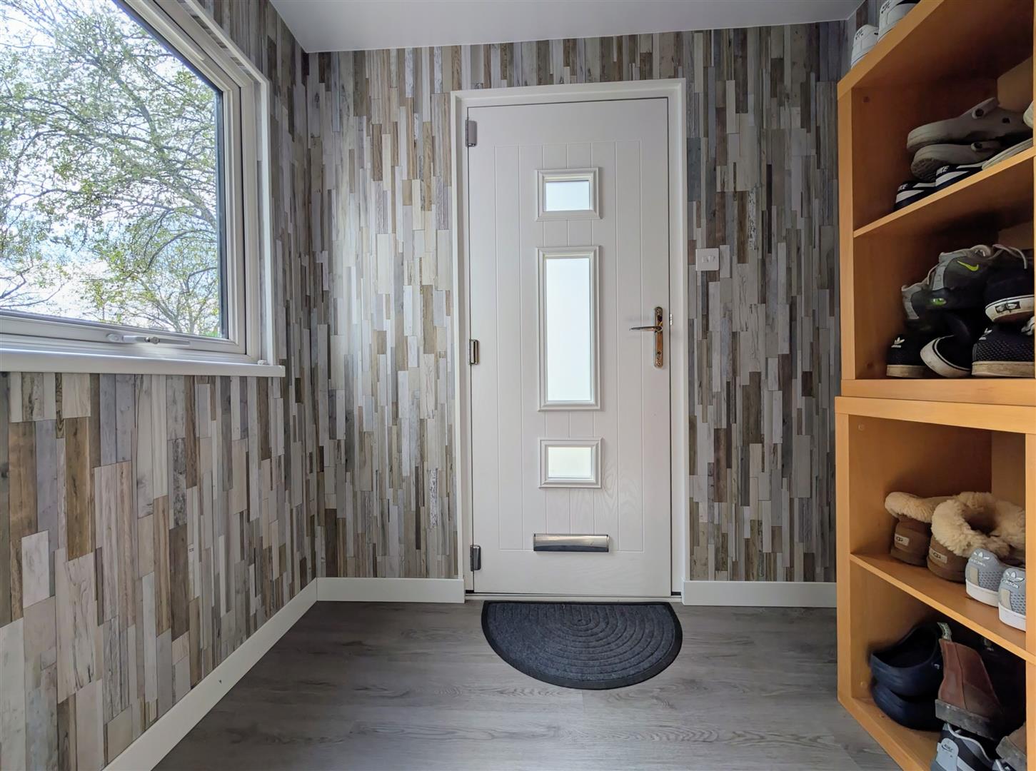 Lobby Area - Understairs recess, cupboard with shelving.