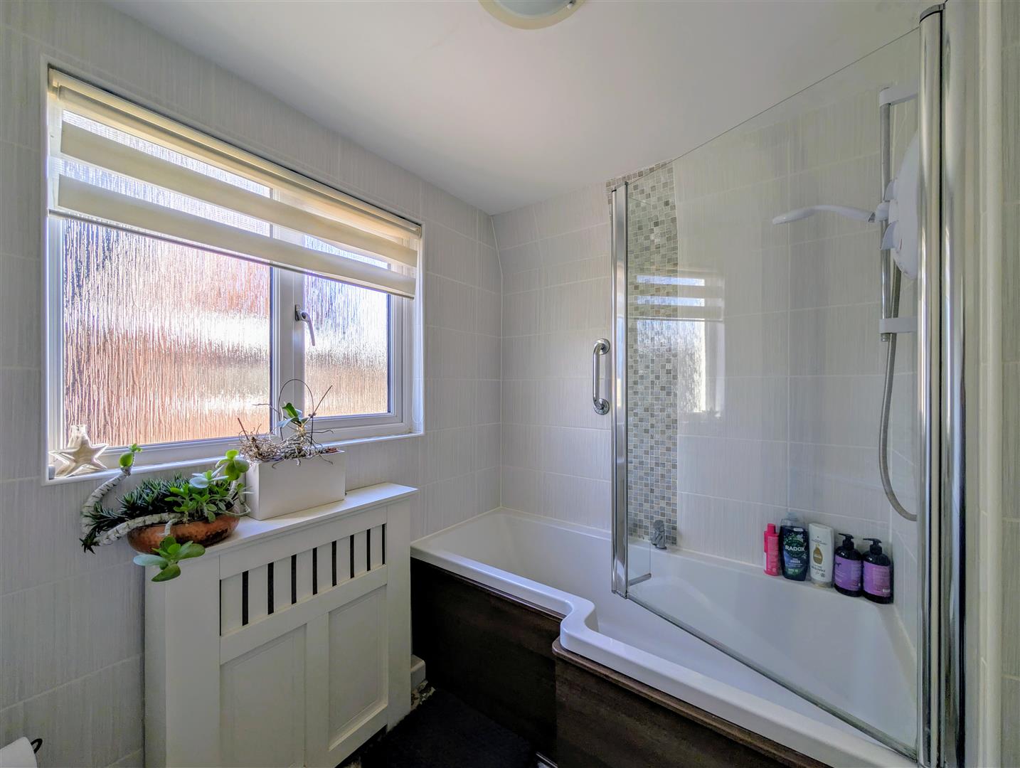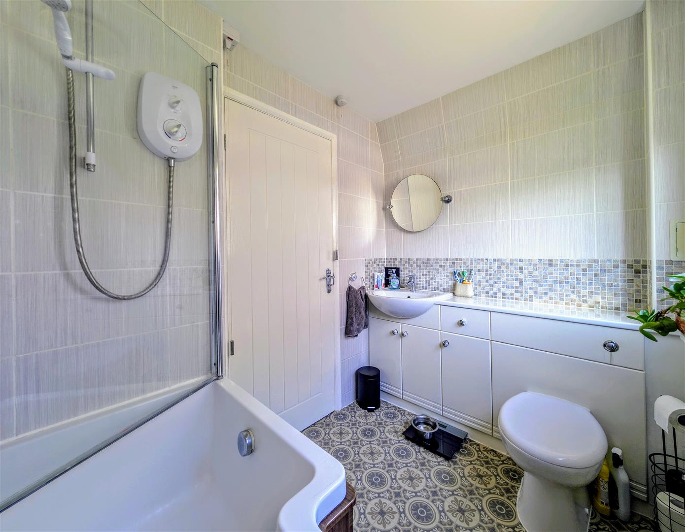 Bathroom - 2.31m x 1.73m (7'7 x 5'8) - White suite comprising shower bath with a shower unit over, low level w.c., wash hand basin with a mixer tap, worksurface and cupboards below, fully tiled walls, upvc double glazed window to side elevation.