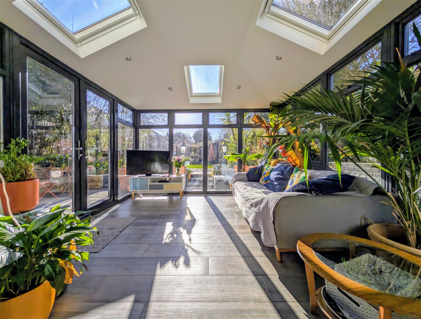 Garden Room - 3.48m x 3.35m (11'5 x 11') - Upvc double glazed construction, French doors to side elevation, tiled floor, downlighters, three Velux roof lights.