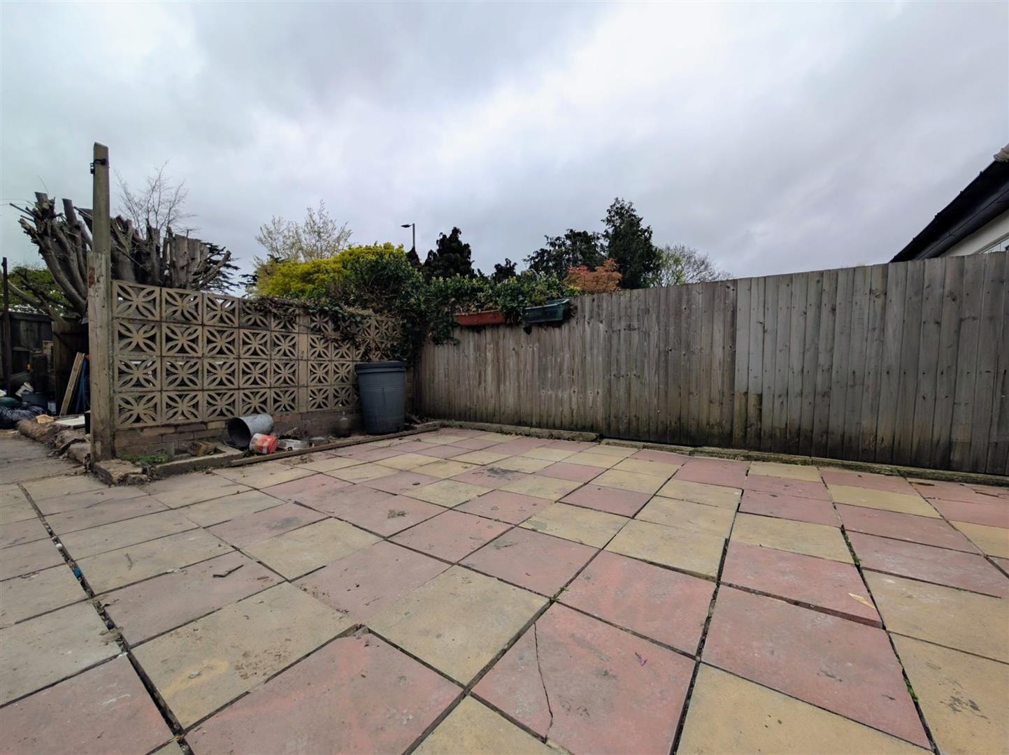 To the rear there is enclosed garden which has a large paved patio and storage sheds surrounded by fencing.