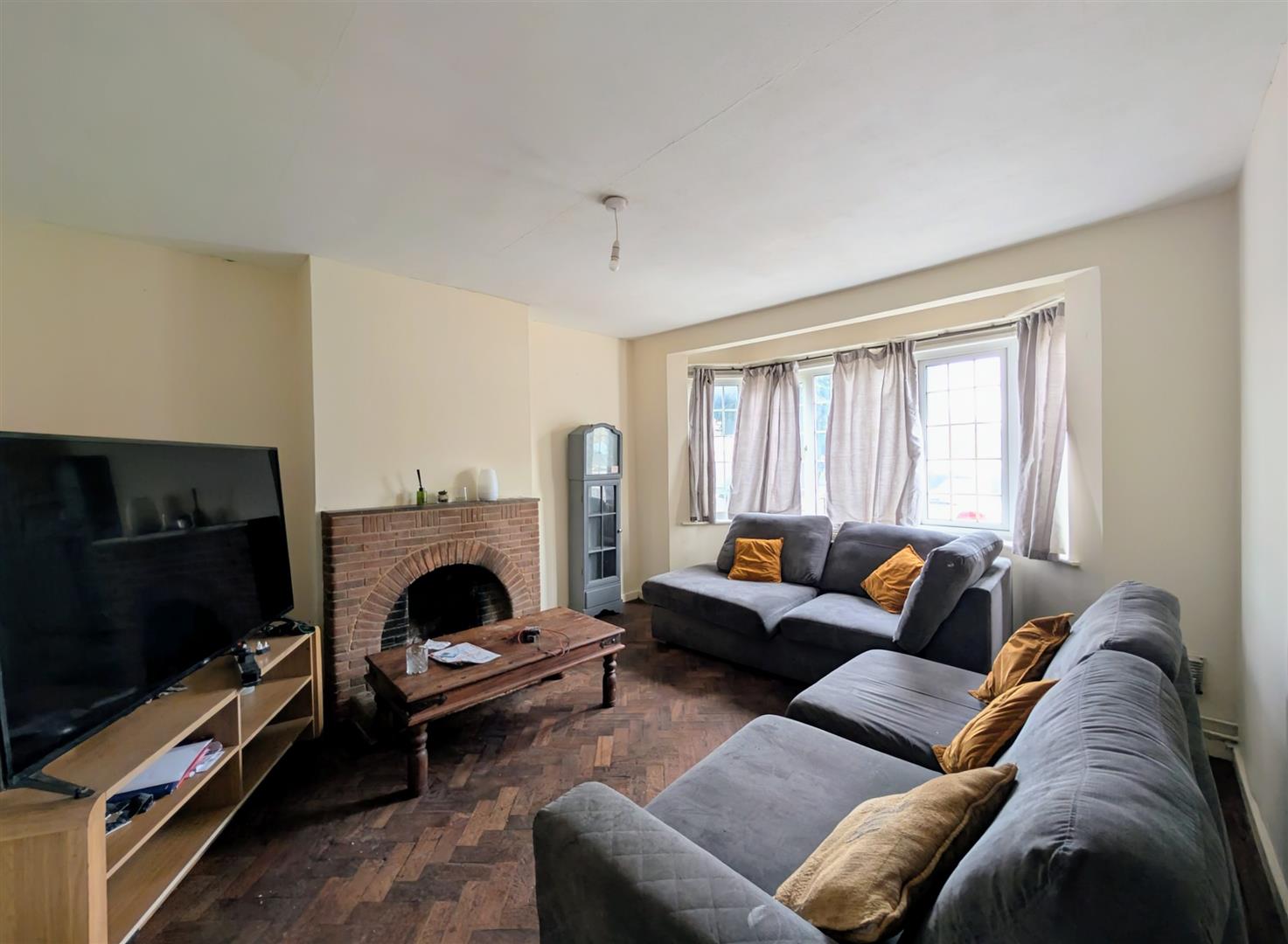 Lounge - 4.37m x 3.66m max (14'4 x 12' max) - Open fireplace with a brick surround and tiled hearth, original parquet flooring, upvc double glazed window to front elevation overlooking the cul-de-sac.