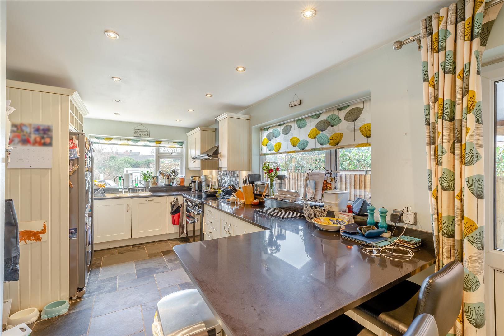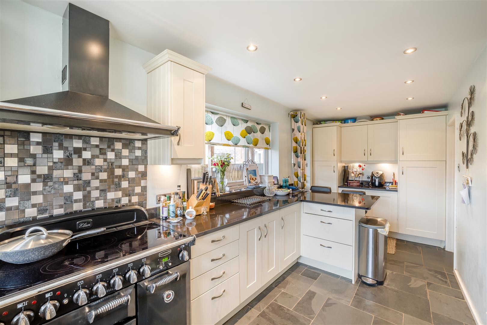 Kitchen / Breakfast Room - 6.10m x 2.97m (20'0 x 9'9) - Alternatively accessed from the entrance hall. The kitchen comprises of a range of base and wall mounted units with composite worktops and splashbacks, integrated appliances to include dishwasher, Rangemaster electric oven with five ring induction hob and extractor fan over, breakfast bar area, space and plumbing for American fridge / freezer, built-in wine rack, chrome heated towel rail, slate tiled floor, inset spotlighting, side and rear aspect windows, half glazed door leading to the outside.