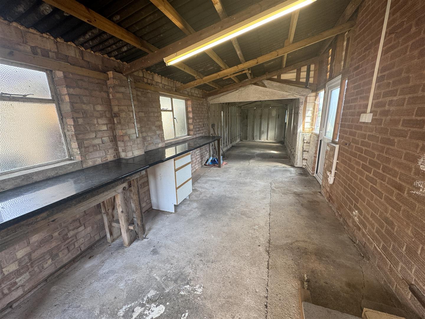 Double Tandem Garage - 11.81m x 2.82m (38'9 x 9'3) - Accessed via up and over door, plumbing for washing machine, several side aspect windows, half glazed UPVC door through to the gardens.