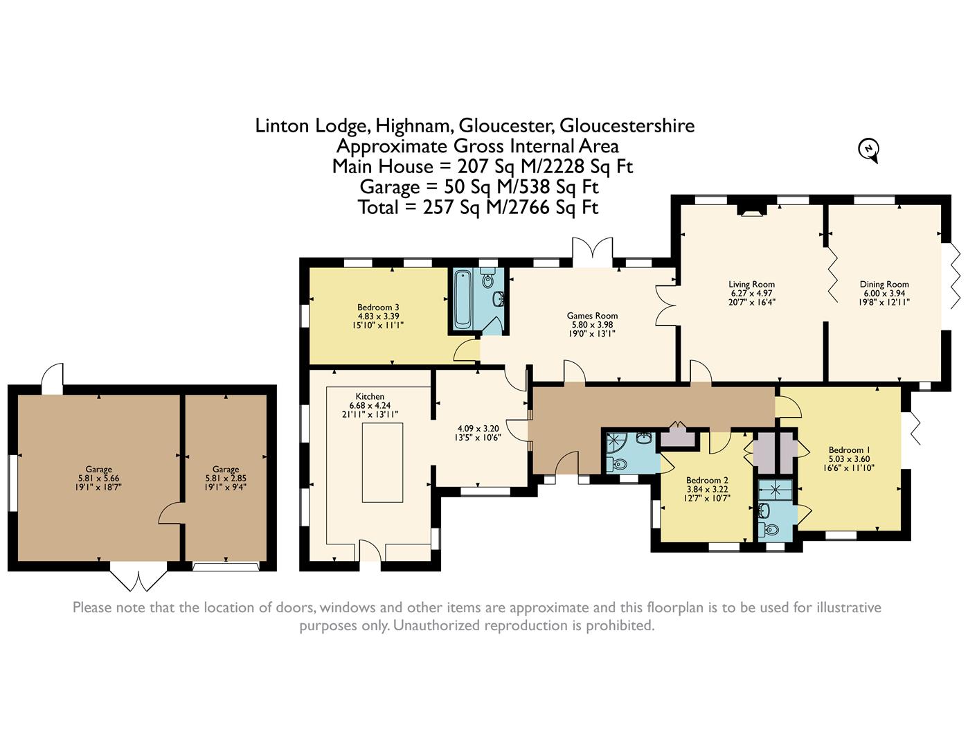 Double Garage - 5.82m x 5.66m (19'1 x 18'7) - Accessed via double doors, power and lighting, side aspect window.