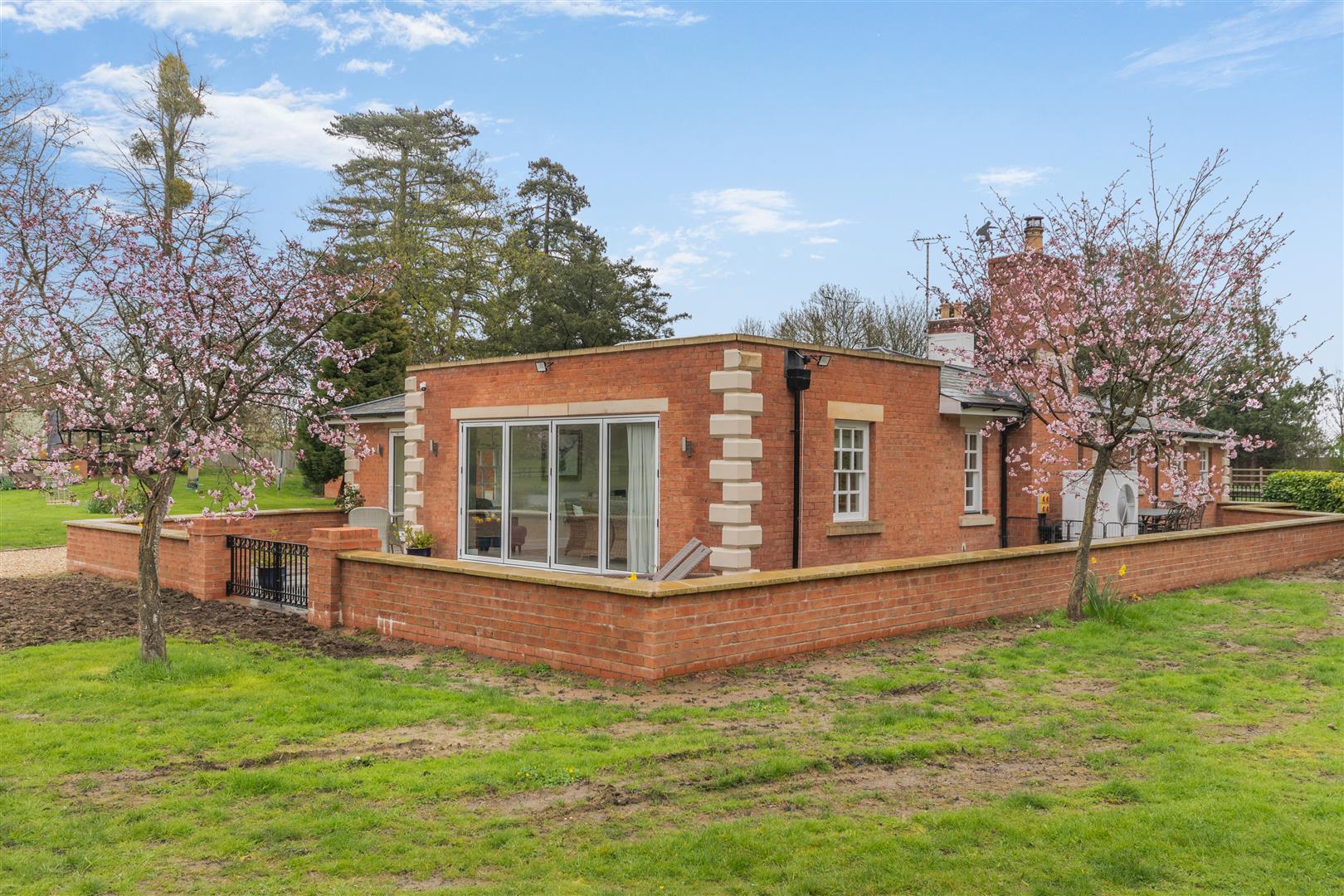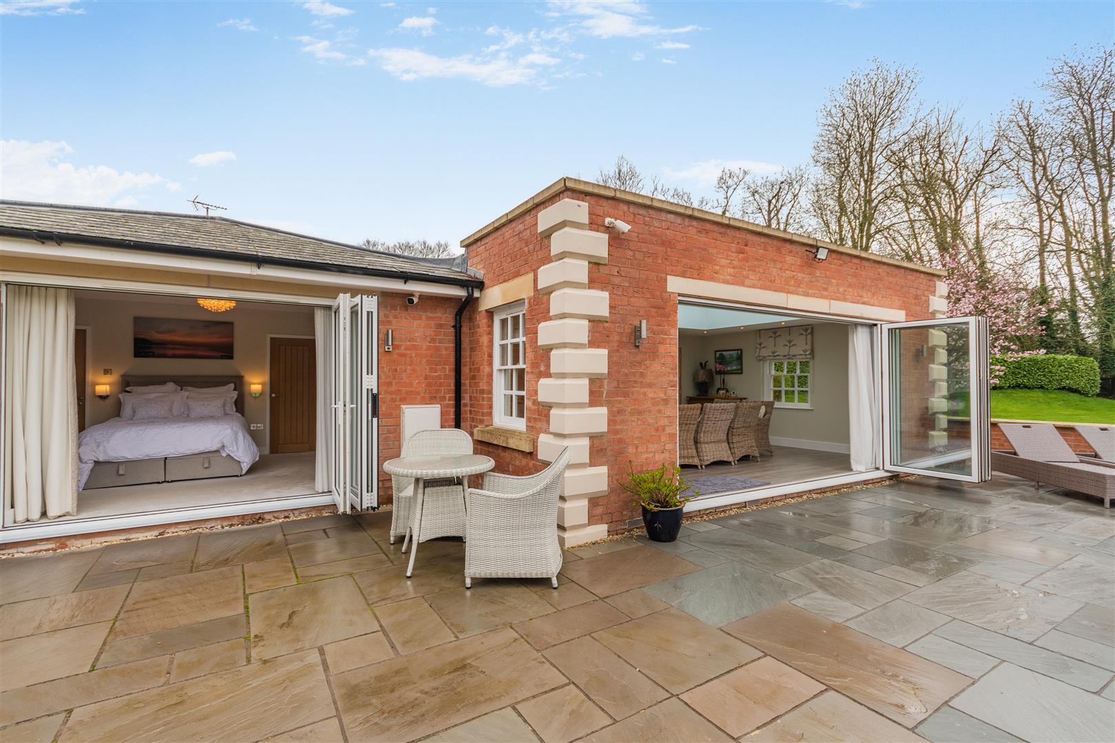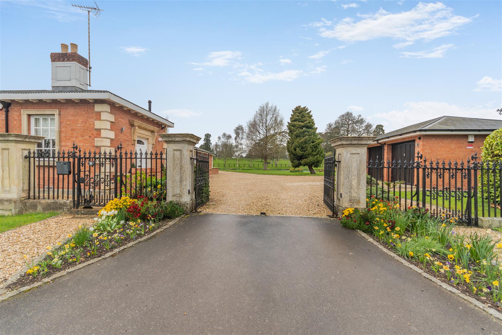 Outside - To the front of the property, wrought iron gates, with two pedestrian gates to either side, opens onto a large driveway leading to a courtyard. An additional set of gates opens onto the gardens and grounds, extending to approximately two acres, all enclosed by fencing and mature hedging. To the rear, a patio area offers an ideal space for outdoor dining and entertaining, enjoying the west-facing gardens that back onto peaceful farmland and parkland.