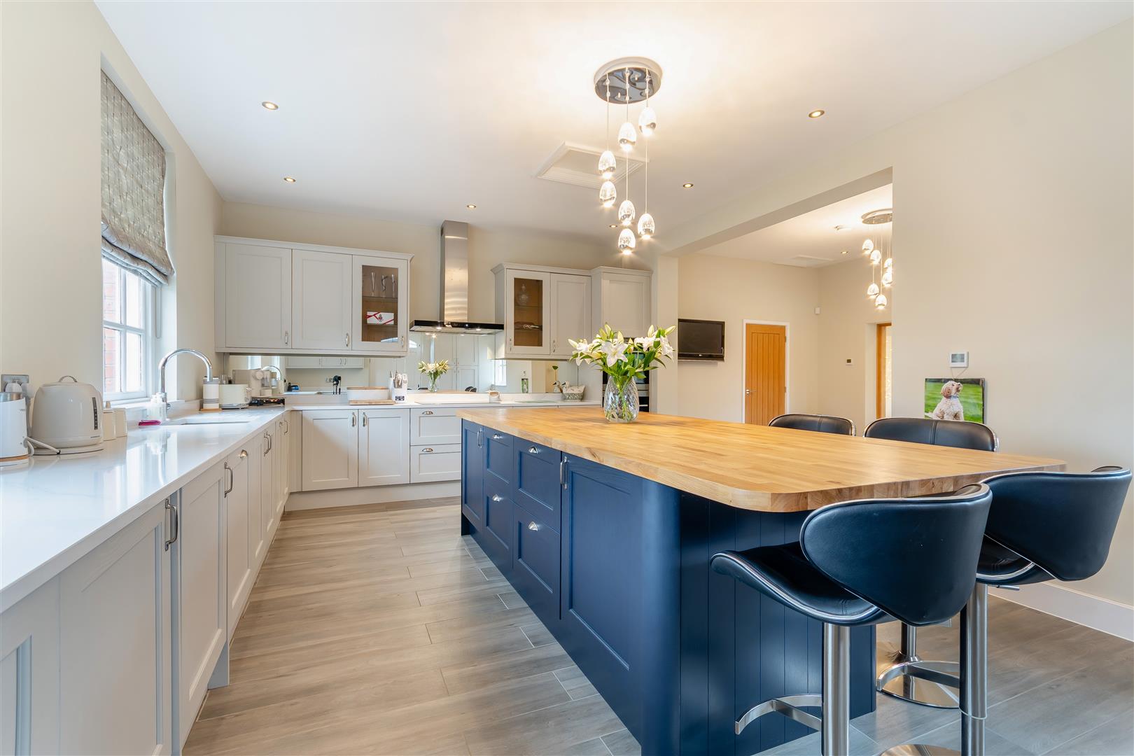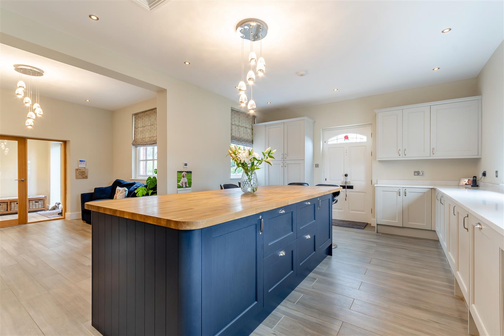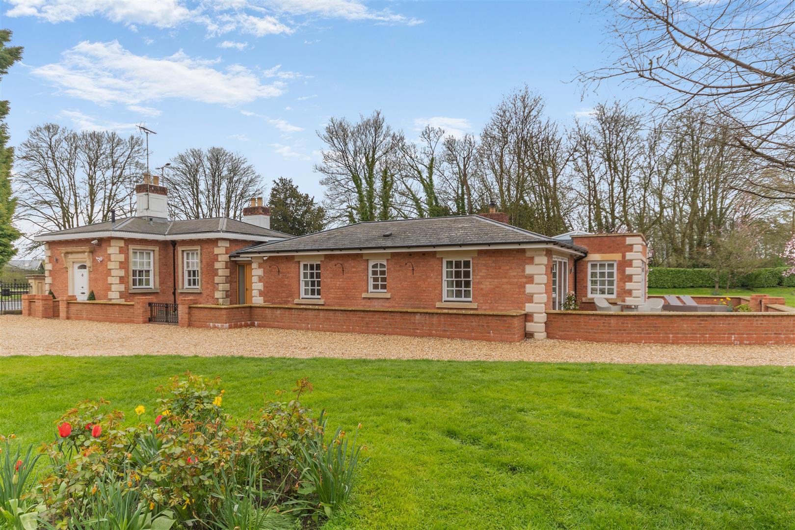 Outside - To the front of the property, wrought iron gates, with two pedestrian gates to either side, opens onto a large driveway leading to a courtyard. An additional set of gates opens onto the gardens and grounds, extending to approximately two acres, all enclosed by fencing and mature hedging. To the rear, a patio area offers an ideal space for outdoor dining and entertaining, enjoying the west-facing gardens that back onto peaceful farmland and parkland.