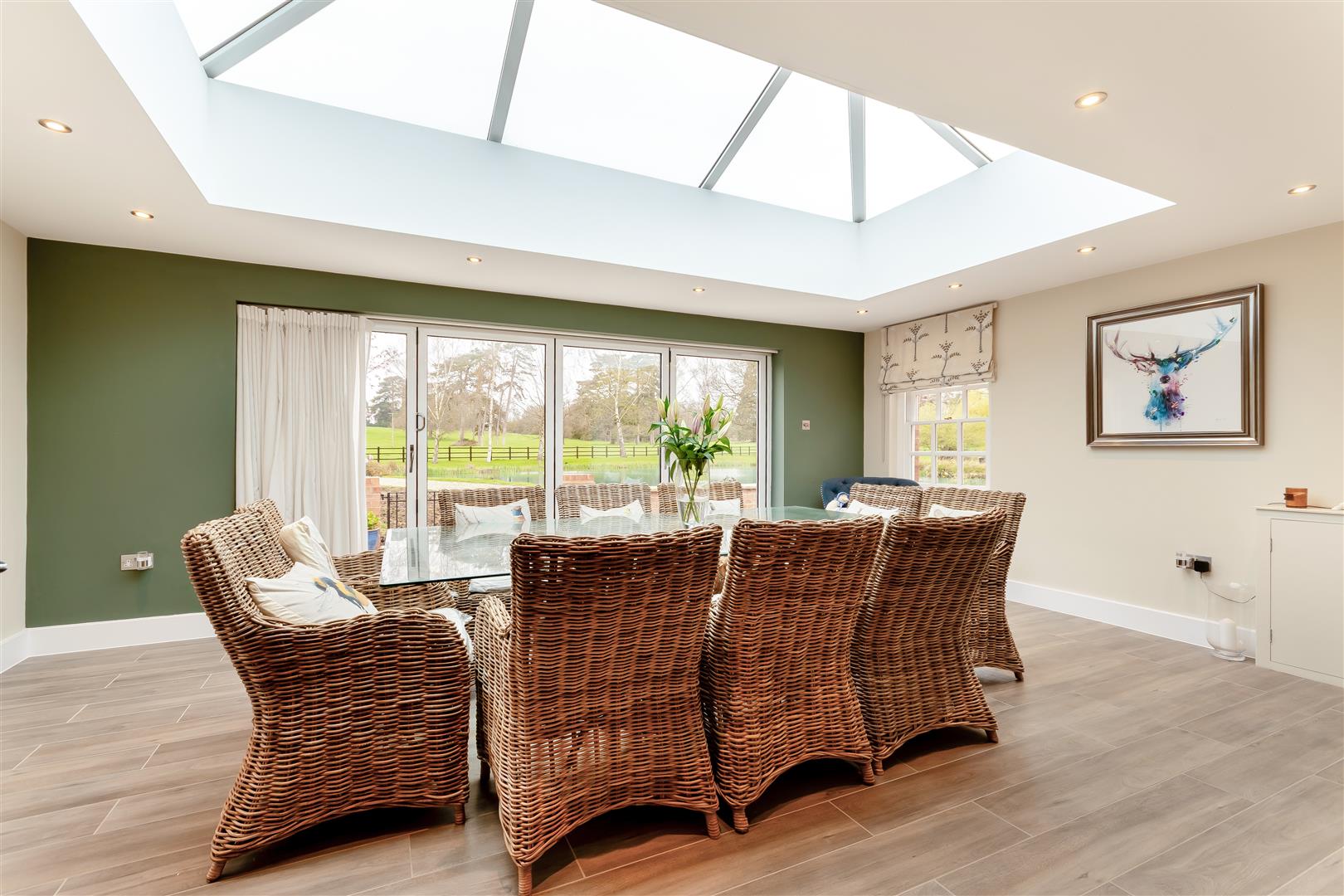 Dining Room - 5.99m x 3.94m (19'8 x 12'11) - Tiled flooring, radiator, inset ceiling lights, large UPCV roof light, double glazed sash windows, rear aspect sliding aluminium bi-fold leading to rear patio with stunning views over the surrounding parkland.