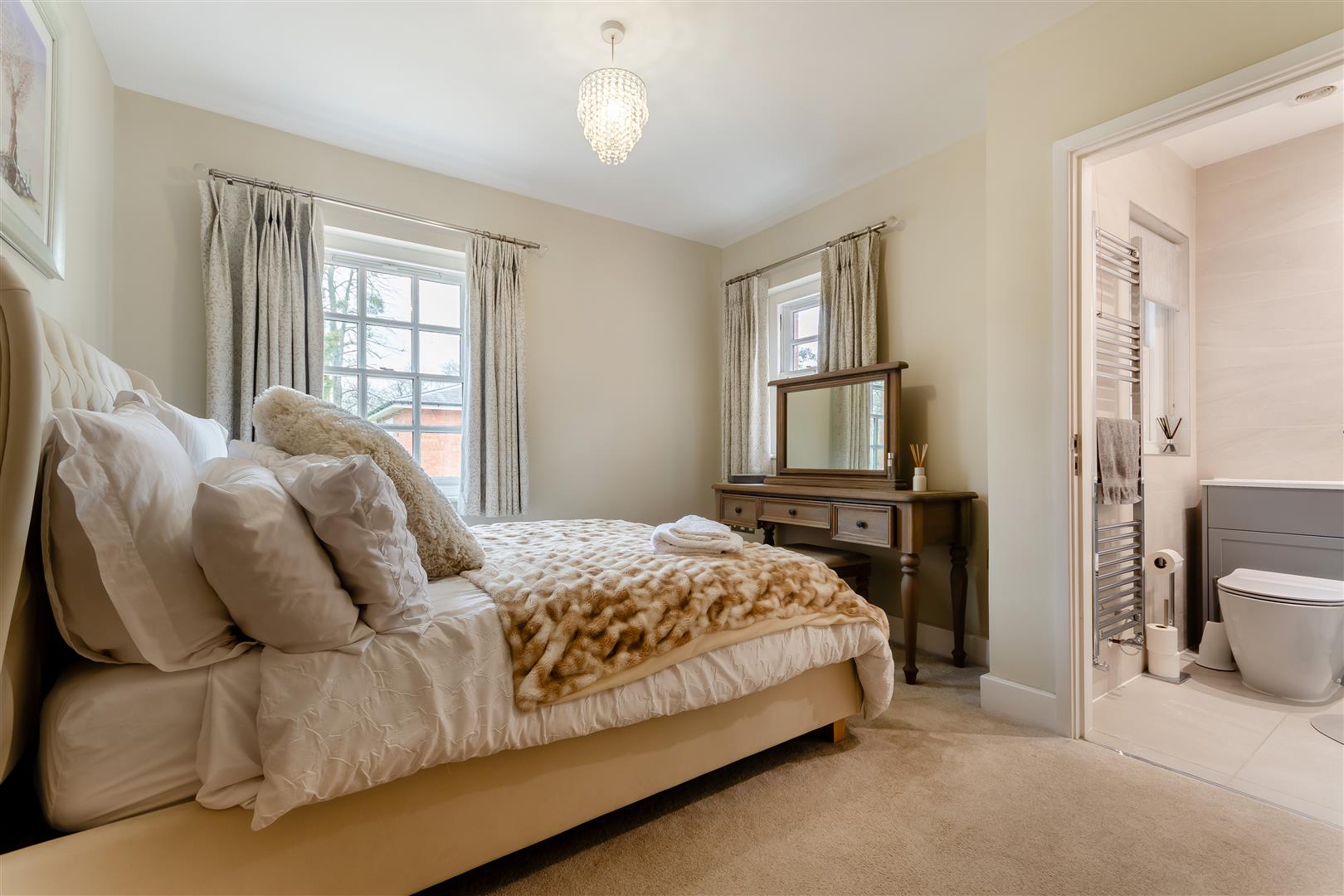 En-Suite - 2.13m x 2.13m (7'25 x 7'18) - Low level WC, vanity wash hand basin with cupboards below, large walk-in shower with large rainfall head over, heated towel rail, extractor fan, inset ceiling lights, tiled floor, fully tiled walls, front aspect frosted sash window.