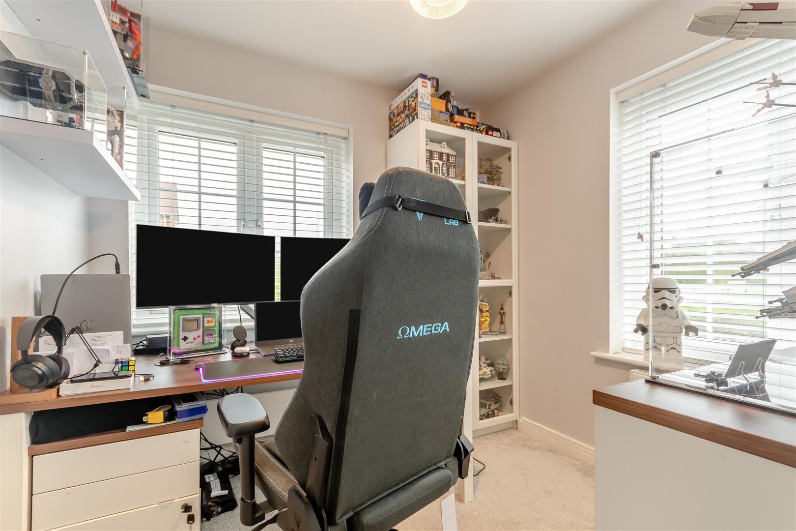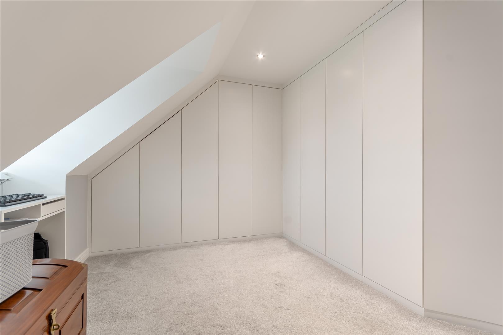 Dressing Room - 3.35m x 3.25m (11'48 x 10'08) - Various built-in wardrobes with hanging space and shelving, airing cupboard, radiator, inset ceiling lights, access to loft space, front aspect UPVC double glazed window door into: