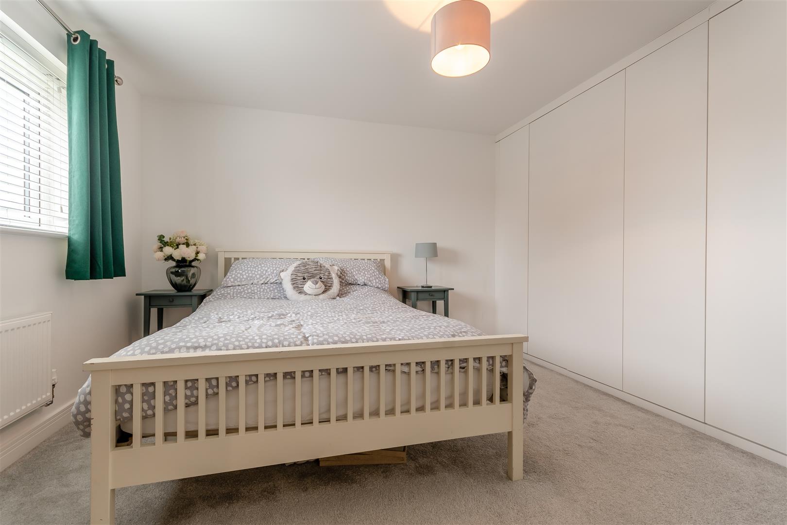 Bedroom 2 - 3.35m x 3.35m (11'75 x 11'32) - Radiator, power points, built-in wardrobes with hanging space and shelving, rear aspect UPVC double glazed window, wooden door into: