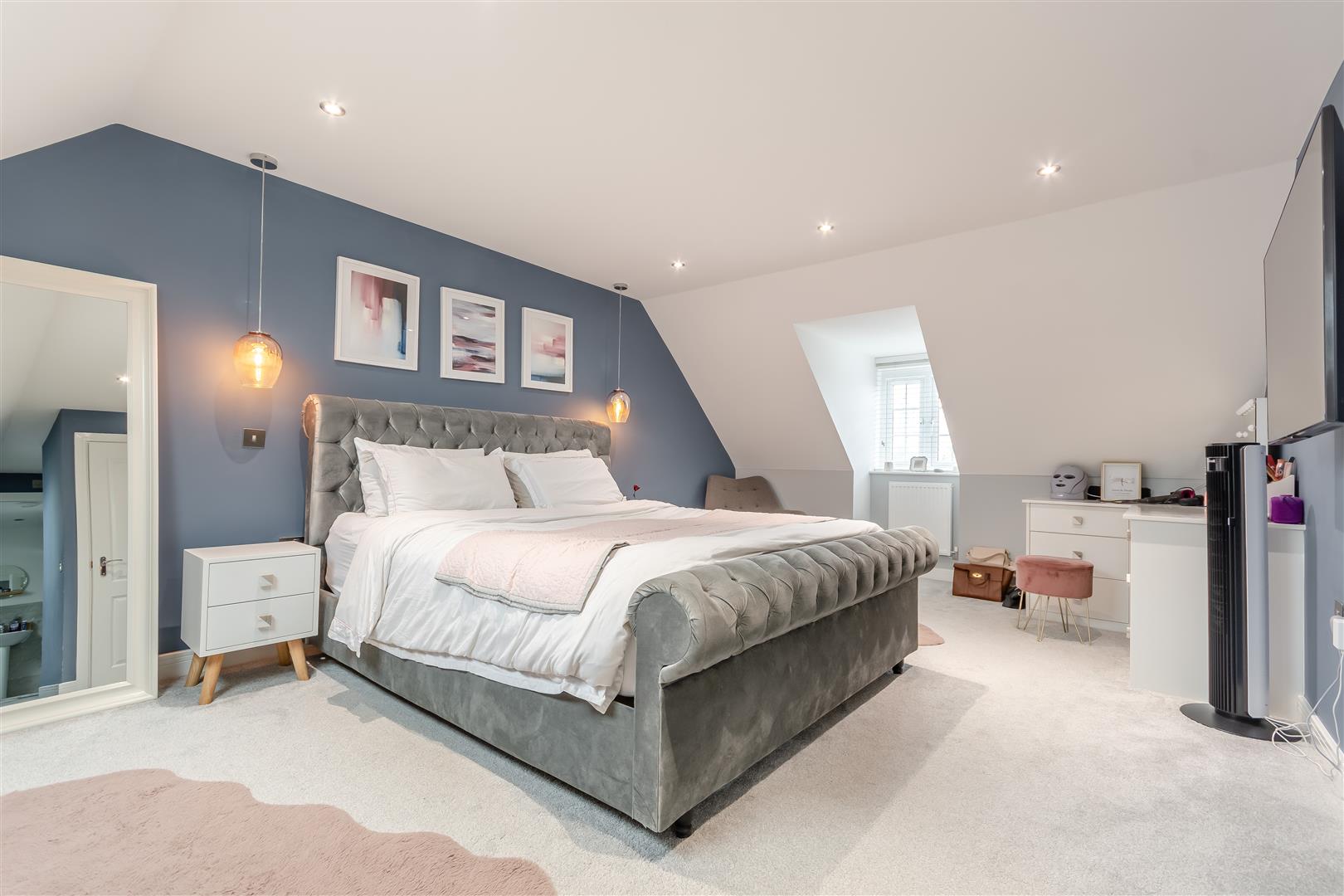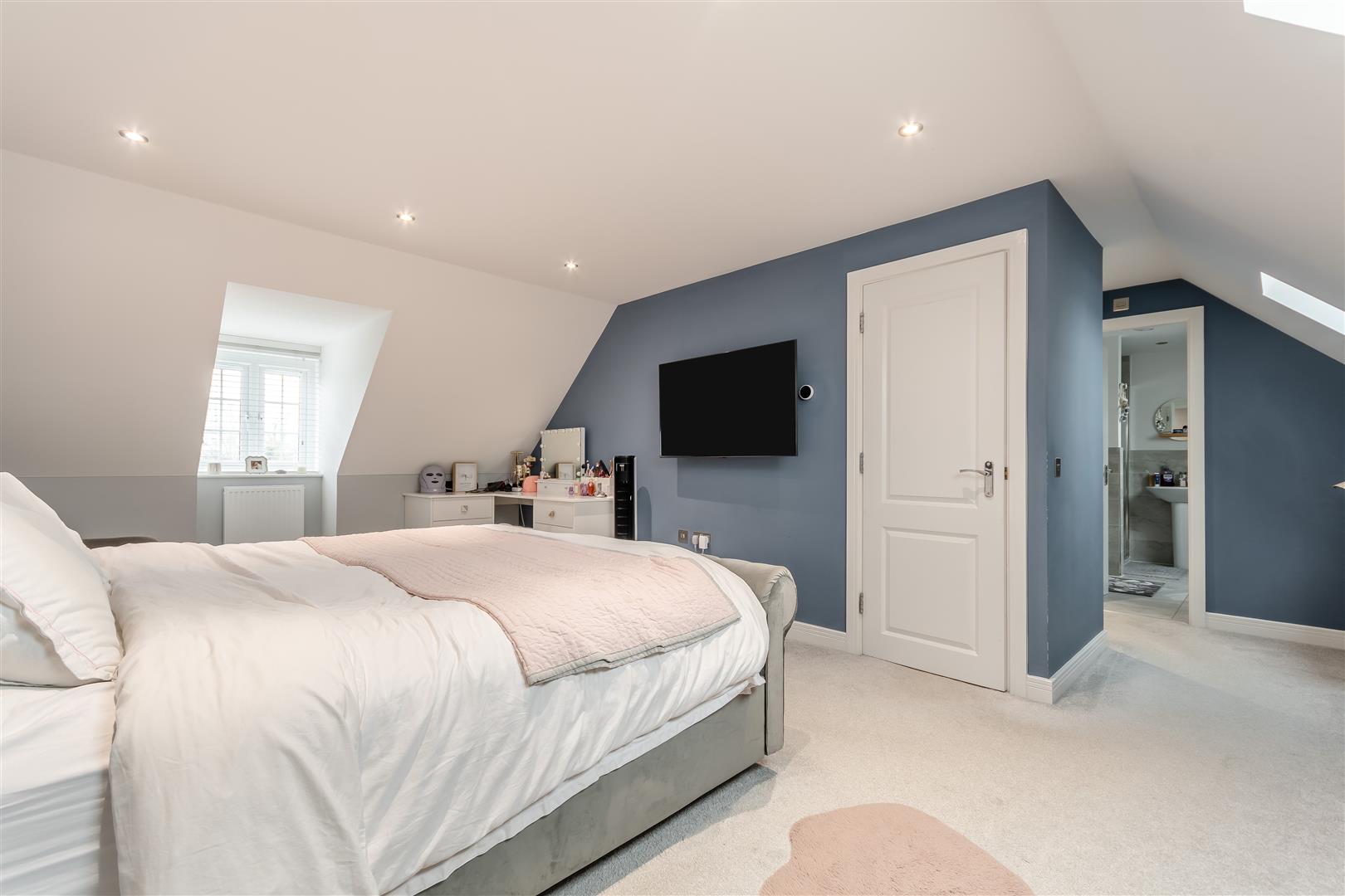 Master Suite - 5.79m x 3.35m (19'85 x 11'95) - Two radiators, power points, TV point, front aspect UPVC double glazed window, rear aspect Velux roof light, inset ceiling lights, walkway into: