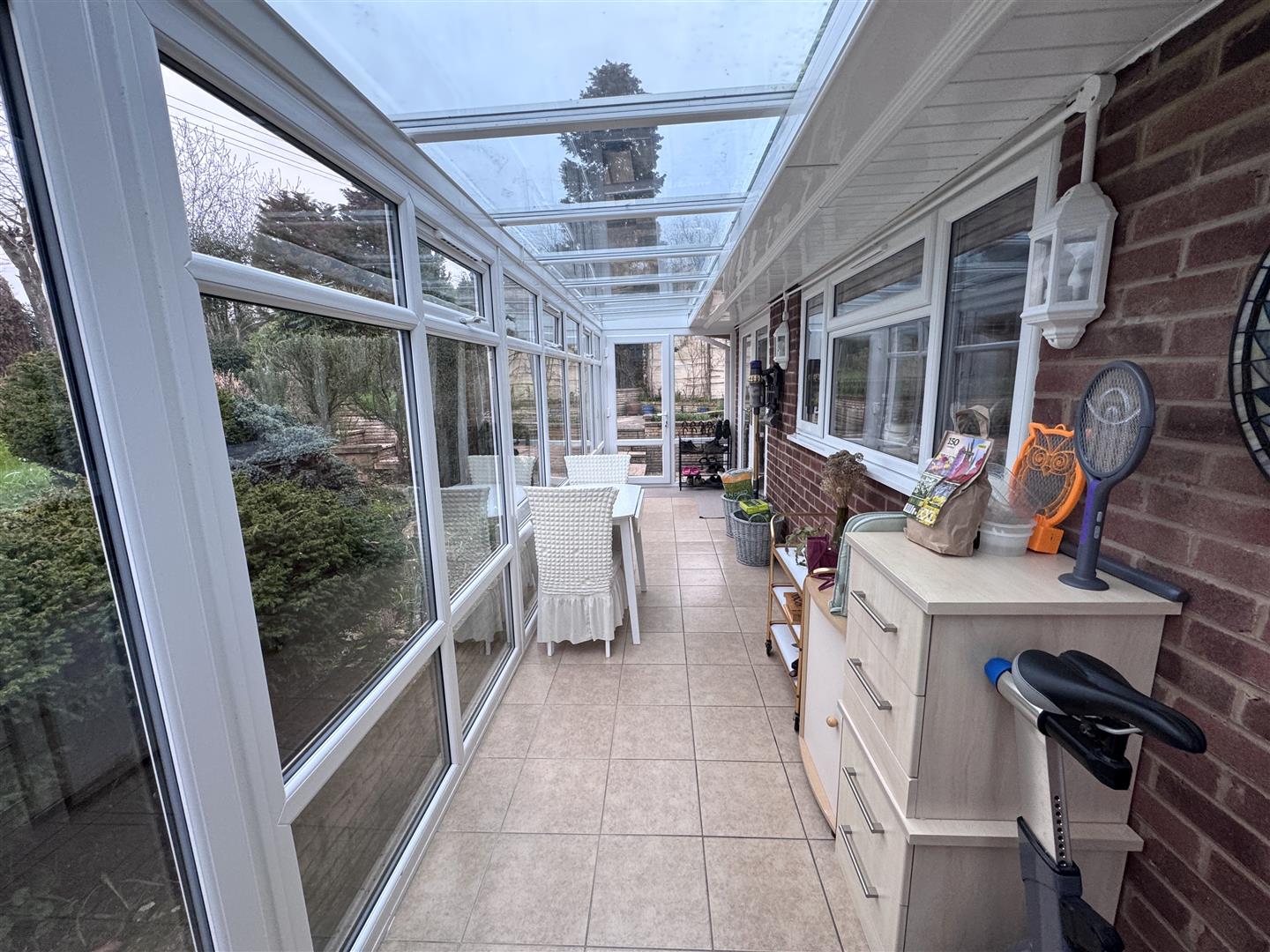 Conservatory - 7.80m x 1.70m (25'07 x 5'7) - UPVC double glazed instruction with glass roof, power and lighting, tiled floor, door to both side aspects, sliding door to gardens.