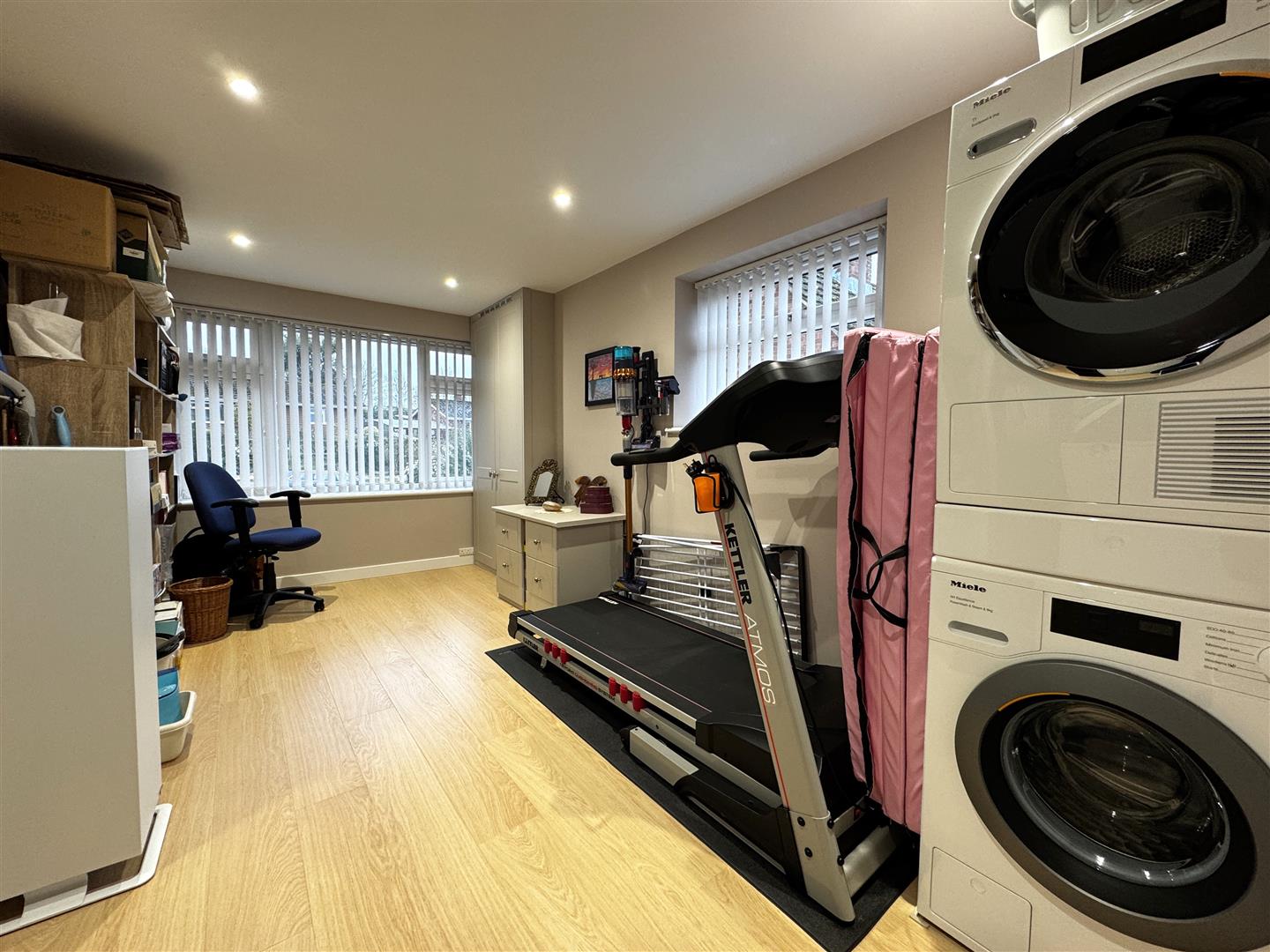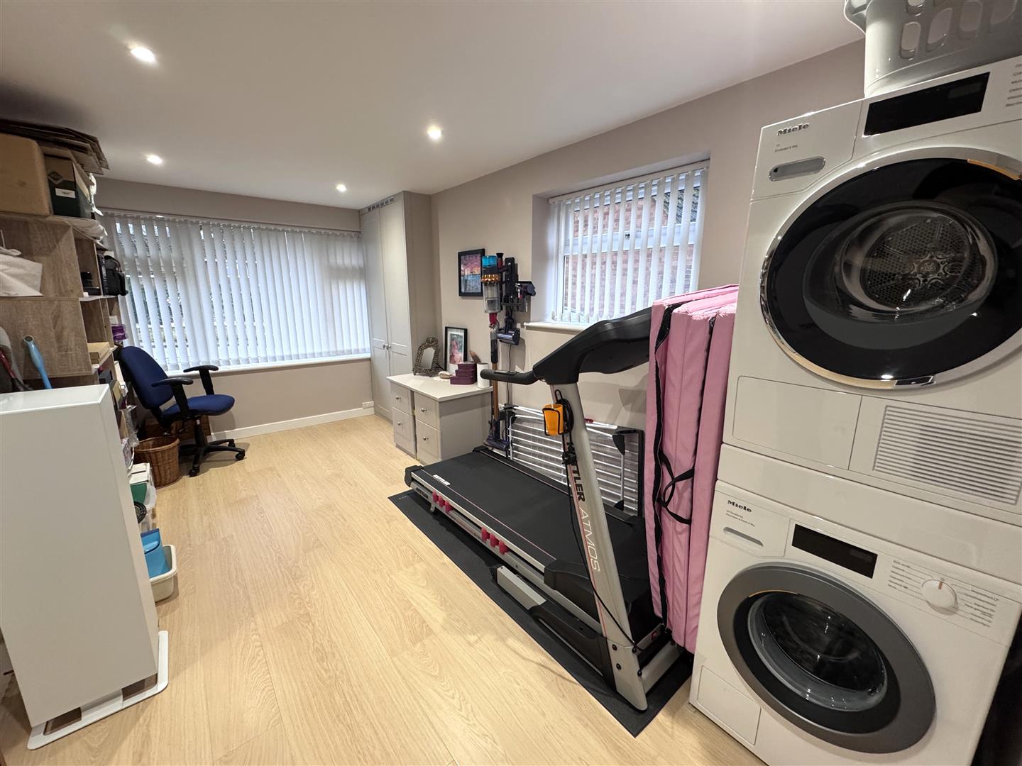 Study / Gym - 4.67m x 2.57m (15'4 x 8'5 ) - Shoe and coat storage area, laminate flooring, night storage heater, plumbing for washing machine, inset spot lighting, front and side aspect windows.