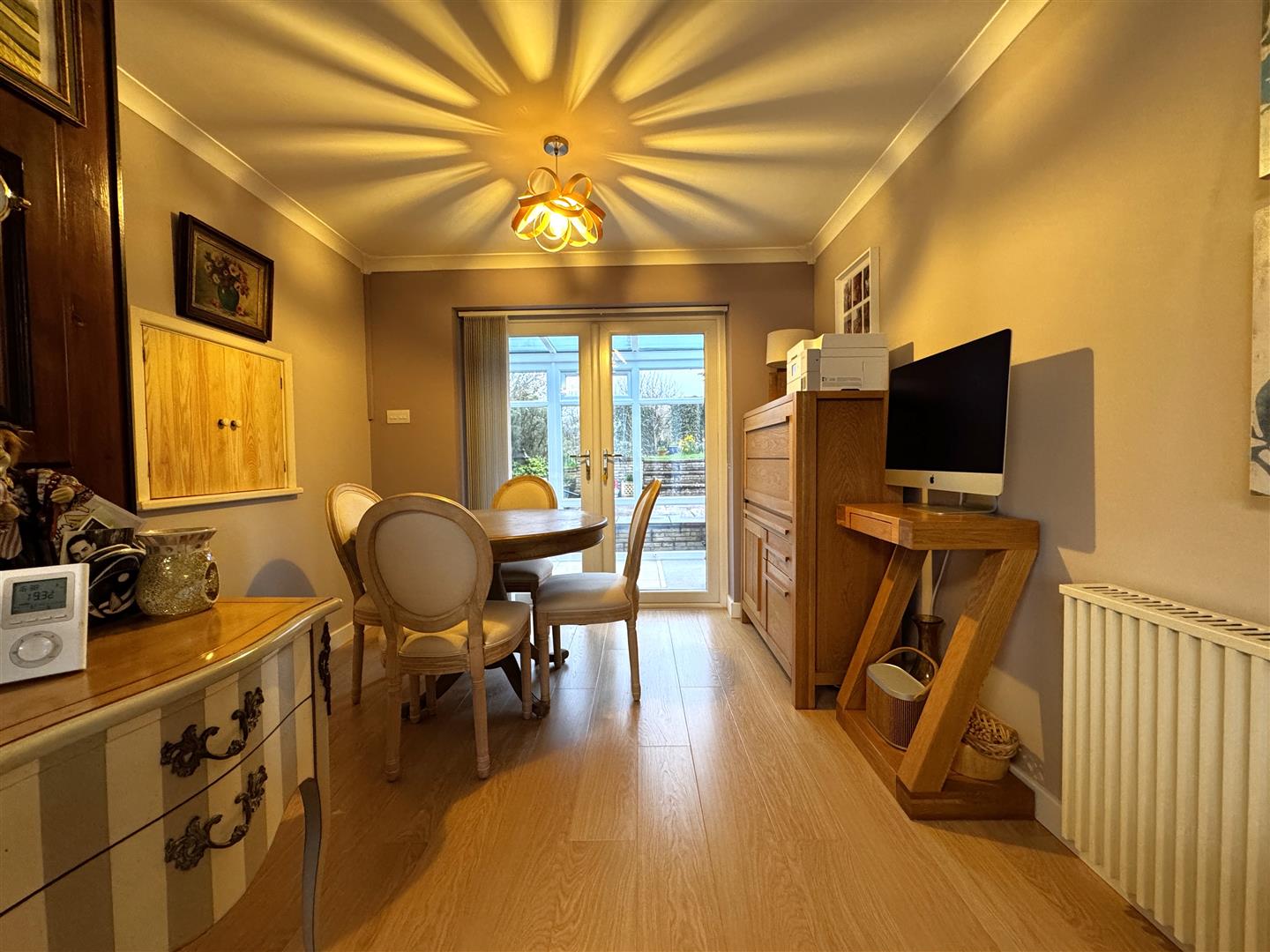 Dining Room - 2.84m x 2.82m (9'4 x 9'3) - Night storage heater, laminate flooring, serving hatch into: