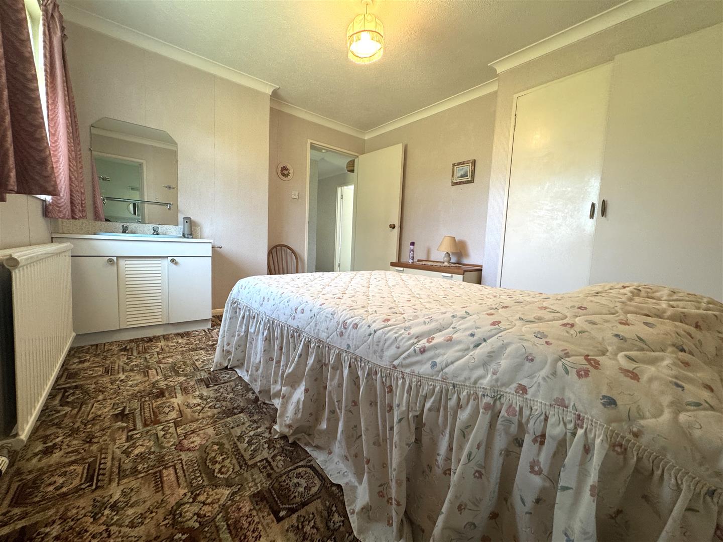 Bedroom One - 3.58m x 3.15m (11'09 x 10'04) - Double radiator, vanity wash hand basin with cupboards below and tiled splashbacks, built in double wardrobe with hanging rails and shelving, rear aspect window enjoying a lovely outlook over the gardens and fields beyond.