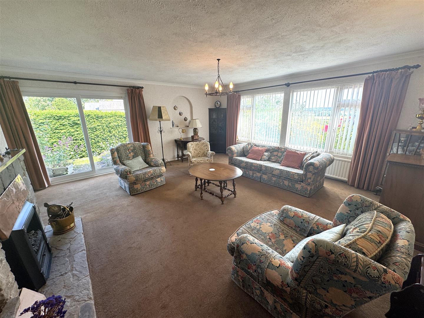 Lounge - 5.87m x 5.36m (19'03 x 17'07) - Stone fireplace with raised hearth and mantle over, double radiator, wide front aspect window enjoying a lovely outlook over surrounding fields and countryside. Side aspect upvc sliding patio doors.
