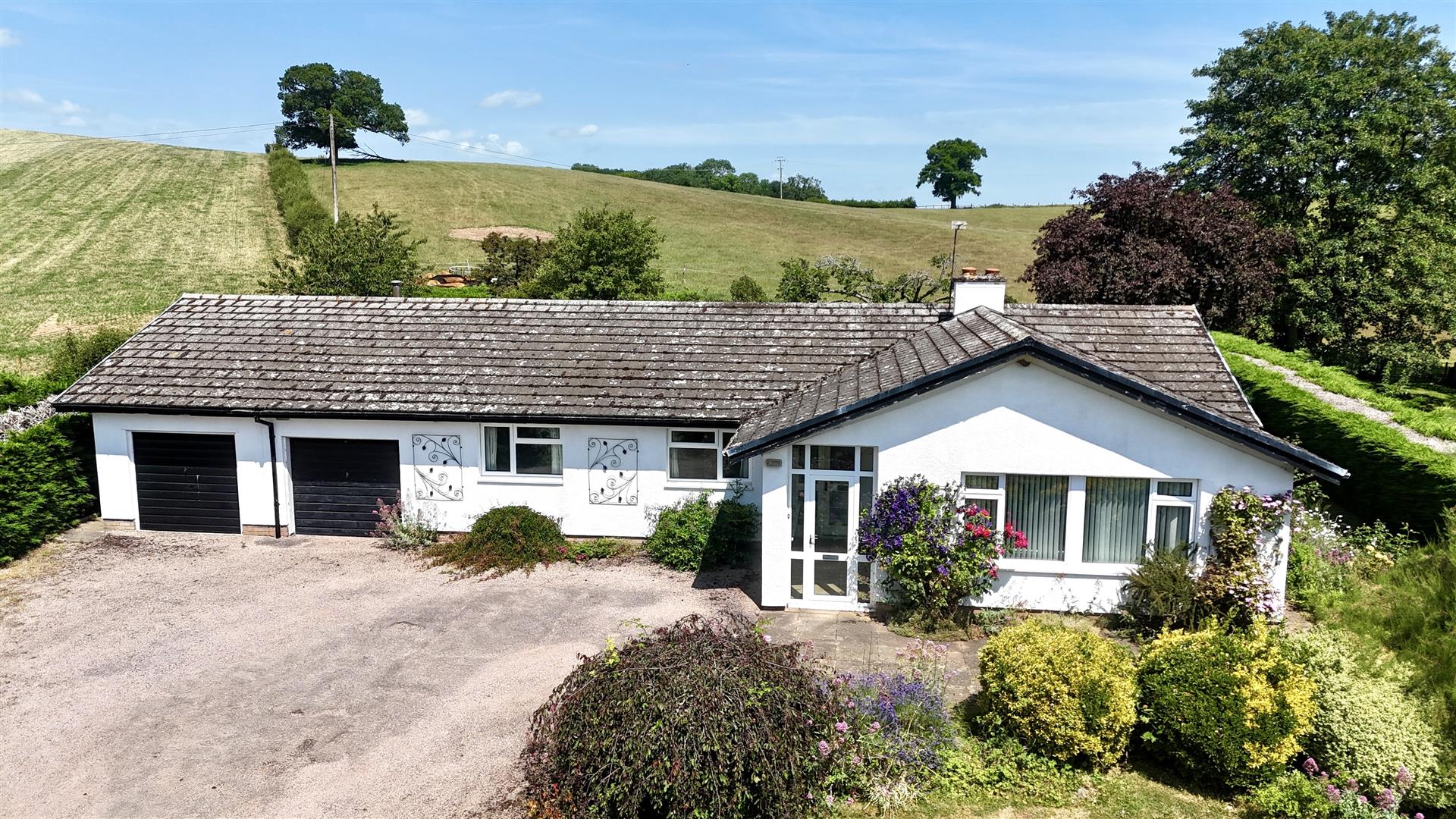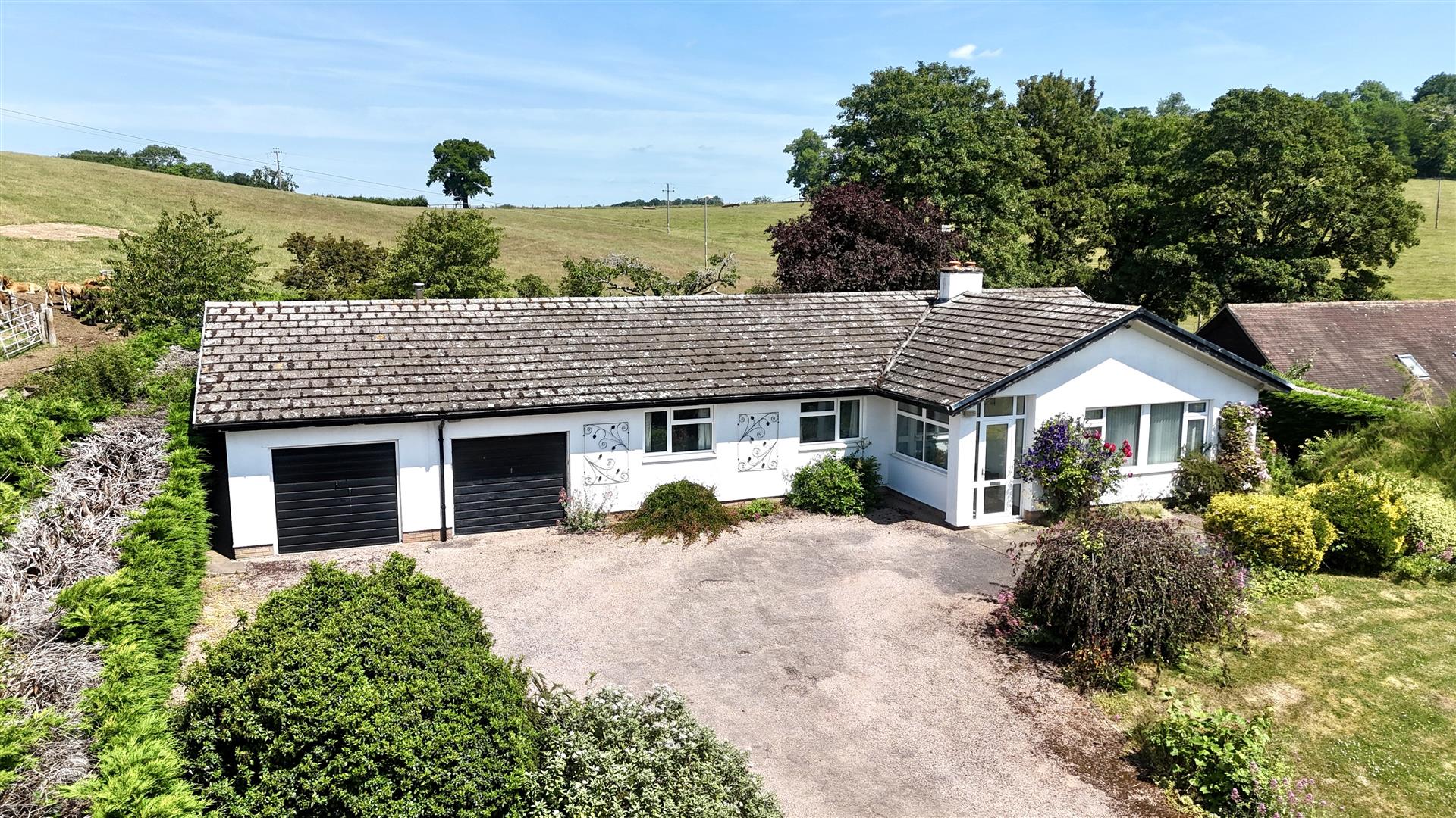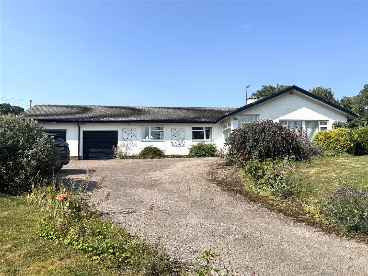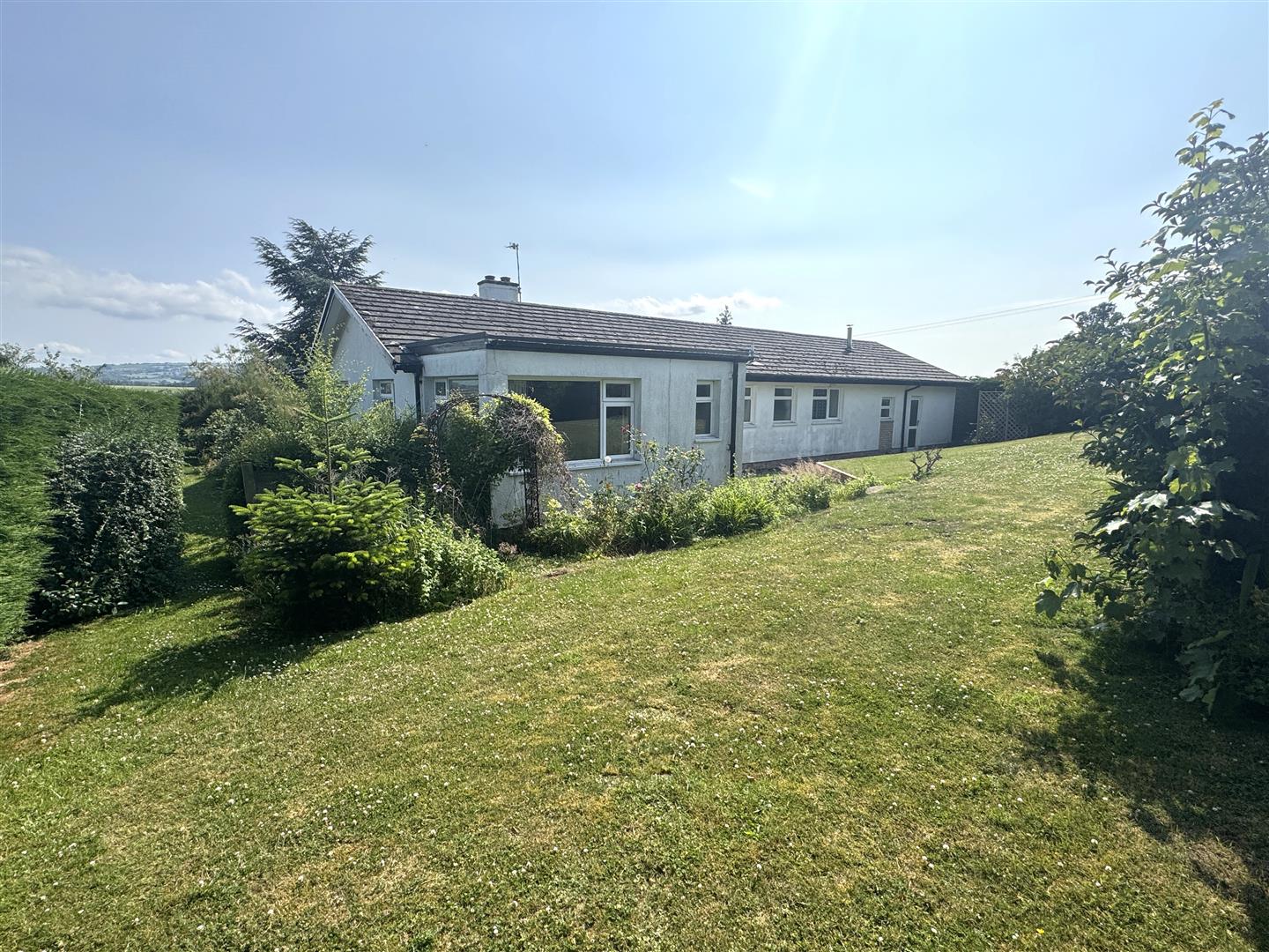 DECEPTIVELY SPACIOUS THREE DOUBLE BEDROOM DETACHED BUNGALOW of NON TRADITIONAL CONSTRUCTION, in need of updating and modernisation throughout, enjoying LOVELY FAR REACHING ELEVATED VIEWS over SURROUNDING FARMLAND. The Cedars benefits from having an EN SUITE to MASTER BEDROOM, DOUBLE GARAGE, GENEROUS GARDENS MEASURING approx HALF AN ACRE, all being offered with NO ONWARD CHAIN.