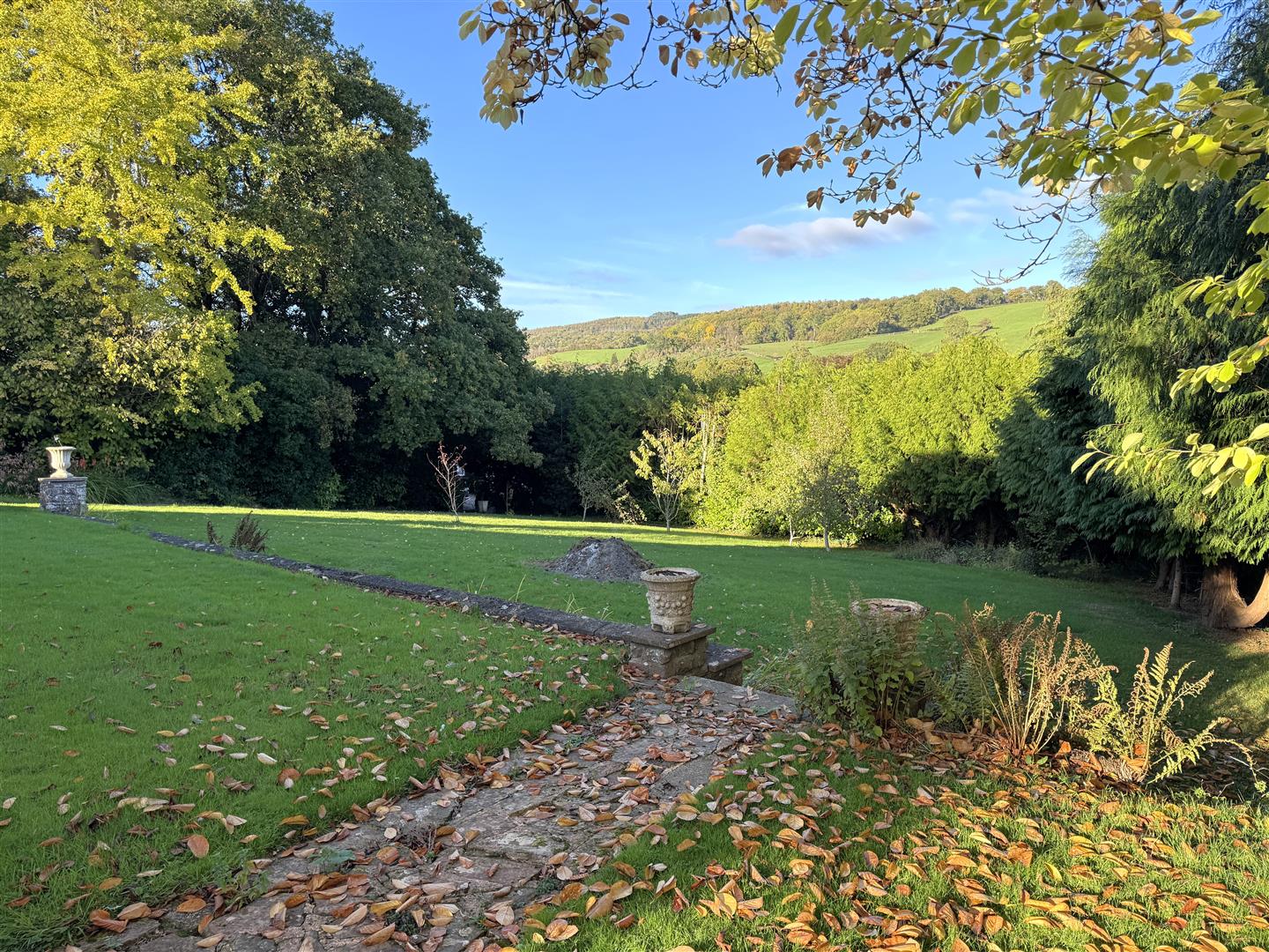 The property has beautiful mature formal gardens with two tiered lawns, patio/seating areas, oil boiler, pedestrian path to the bottom of the garden, several mature trees, outside lighting, outside tap, enclosed by mature hedging and enjoying lovely views over surrounding countryside.