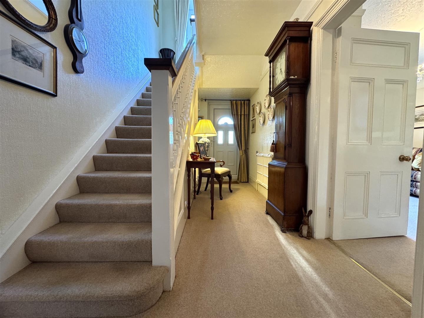 FROM THE ENTRANCE HALL, TURNING STAIRCASE LEADS TO THE FIRST FLOOR: