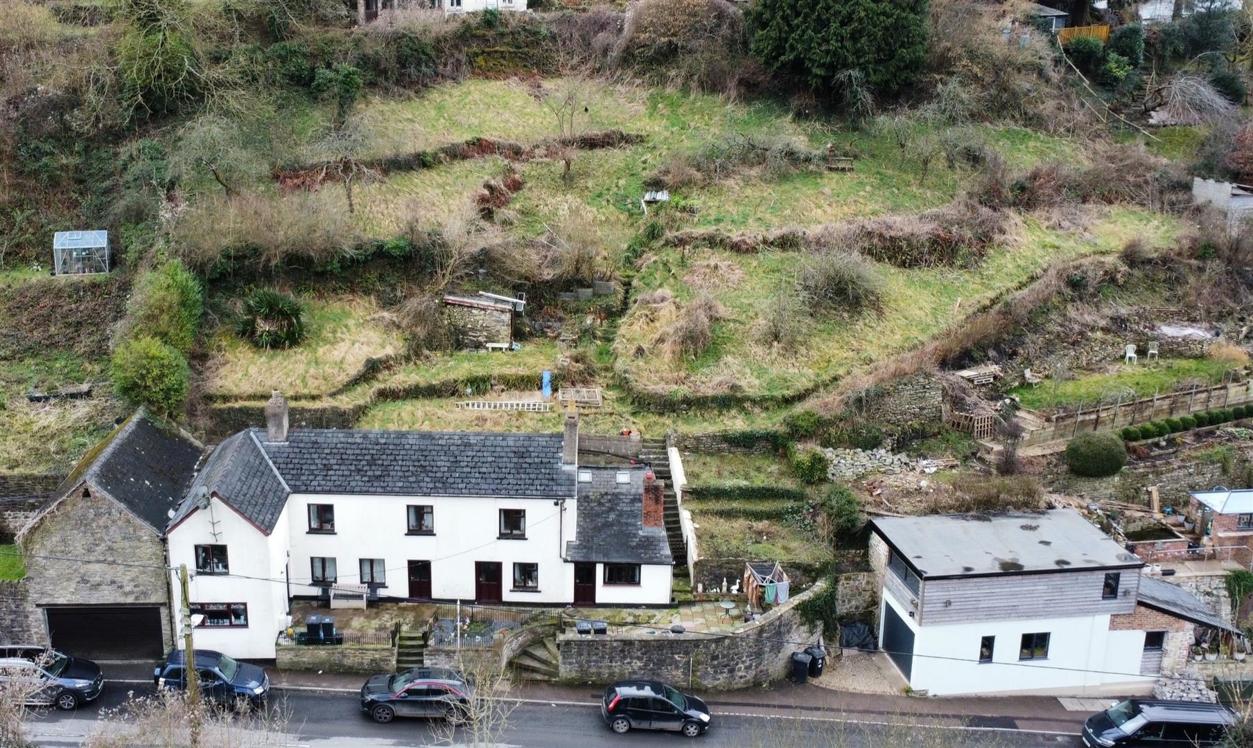 Outside - Steps and a gate lead up to the front of the properties, further stone steps to the side of 1 Jasmine Cottage lead up to the gardens to the rear where there is a small stone outbuilding, various trees and bushes and natural borders. The upper levels of the gardens make for ideal seating areas to take in the beautiful views across the valley.