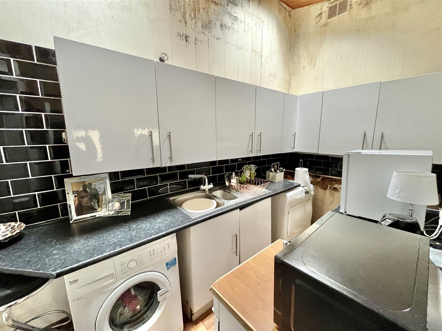 Kitchen - 3.15m x 1.75m (10'4" x 5'9") - Wall and base mounted units with rolled edge worktops, one and half bowl sink and drainer, plumbing for washing machine, space for a cooker, space for a under counter fridge and freezer and tumble dryer, two skylights, door into a rear corridor with power and lighting being used as a storage area.