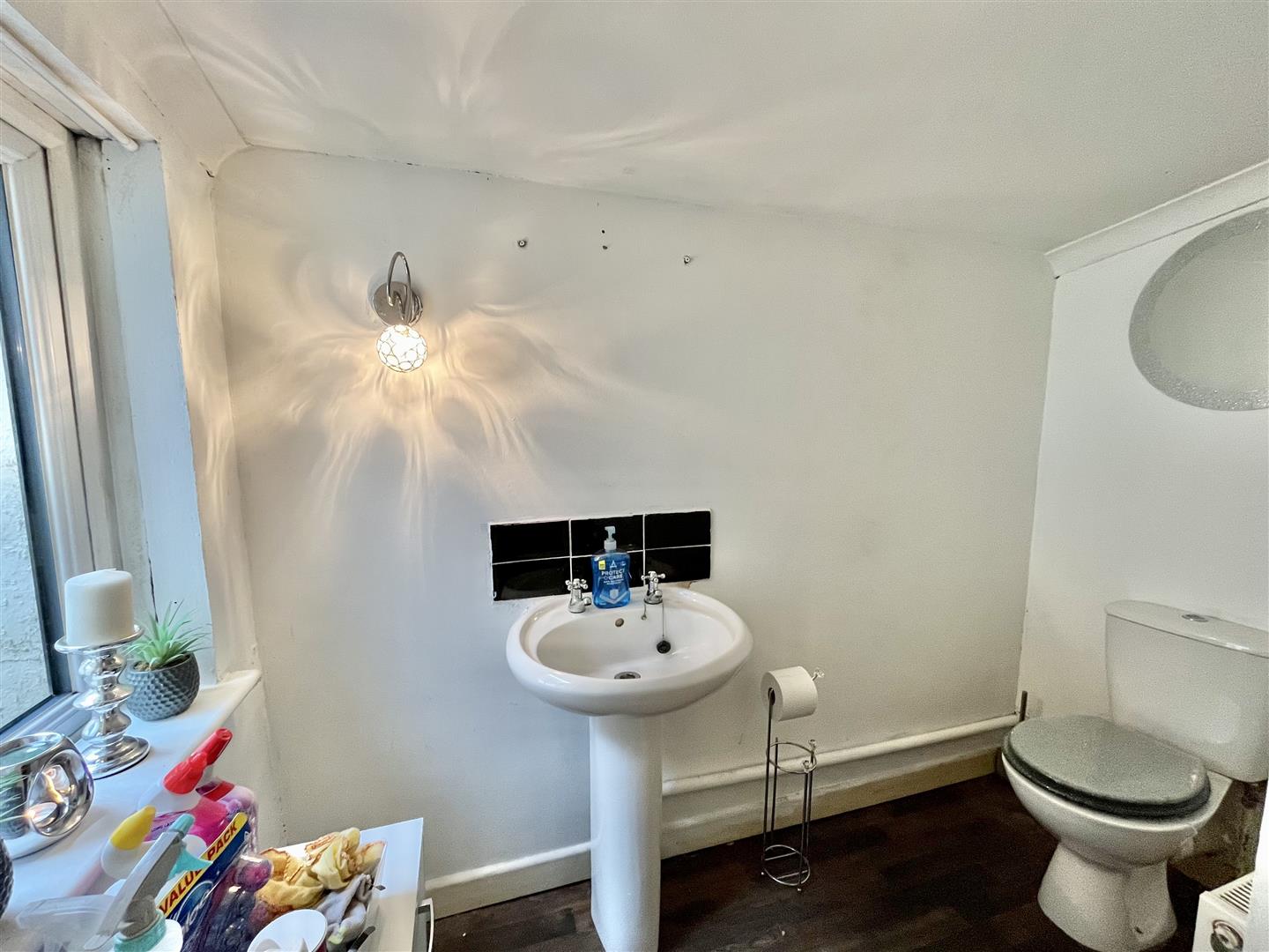 Wc - Low level wc, pedestal handbasin with tiled splashbacks, window to side aspect.