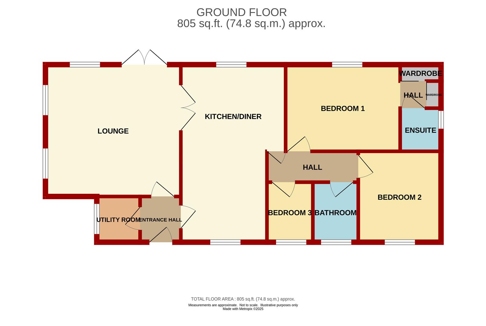 Entrance Hallway - 1.65m x 1.45m (5'5" x 4'9") - Doors leading to kitchen, lounge and utility area.