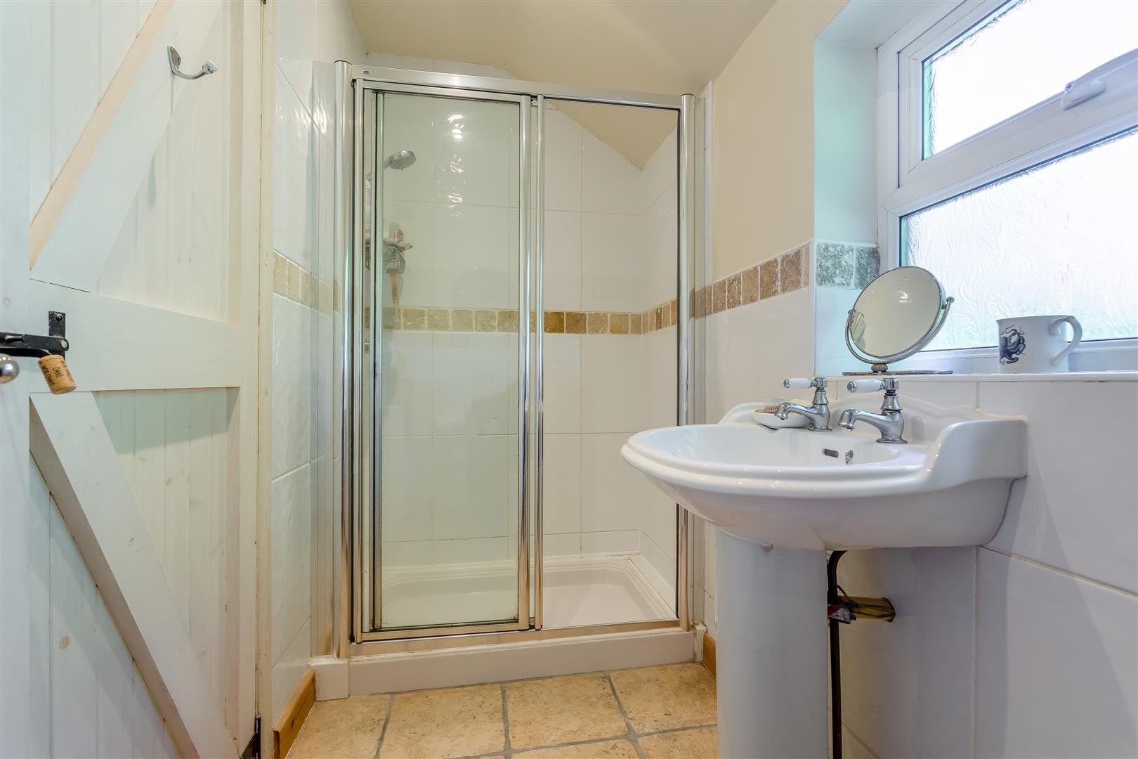 En-Suite - 2.87m x 1.27m (9'05 x 4'02) - Double shower with tiling surround, pedestal wash hand basin, W.C, partly tiled walls, radiator, rear aspect double glazed upvc frosted window.