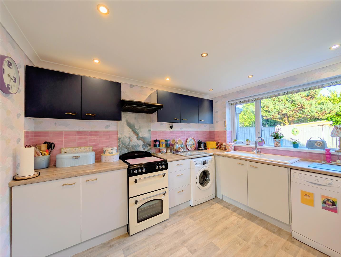 Kitchen - 2.90m x 3.76m (9'06 x 12'04) - Range of base, wall and drawer mounted units, rolled edge worktops, single bowl single drainer ceramic sink unit with mixer tap above, electric cooker, space and plumbing for washing machine, dishwasher, space for fridge freezer, oil fired Worcester boiler, laminate flooring, part tiled walls, power points, appliance points, airing cupboard, insert celling spotlights, coving, storage cupboard, rear aspect double glazed UPVC window.