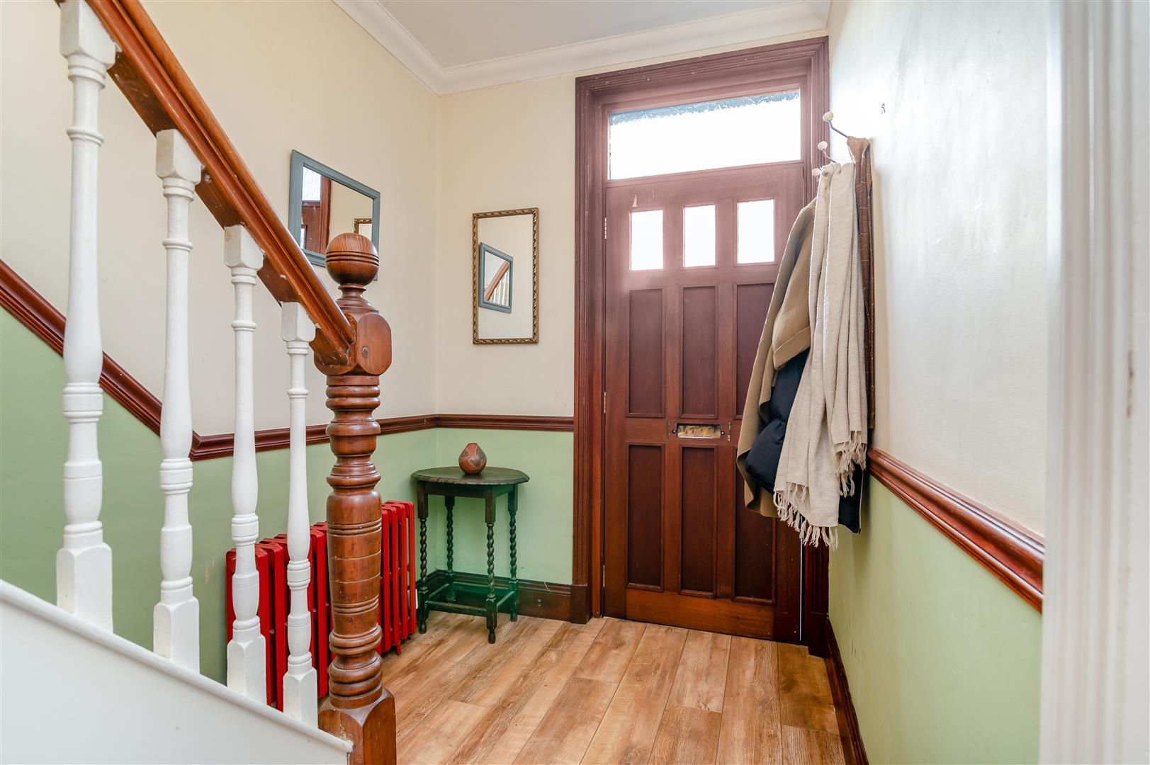 Entrance Hallway - With original Edwardian tiled flooring beneath engineered oak flooring, under-stairs storage and pantry cupboard. Doors lead to the sitting room and kitchen, with stairs rising to the first floor.