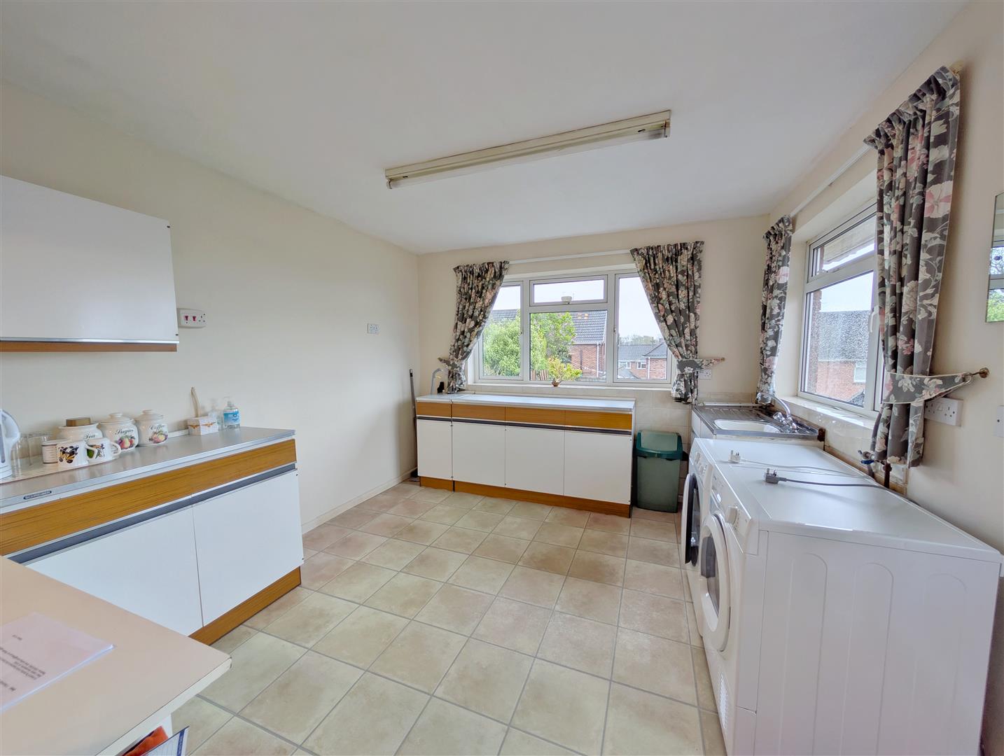 Kitchen - 3.30m x 3.58m (10'10 x 11'09) - Rear and side aspect double glazed UPVC windows, a range of wall, drawer and base mounted units, space for washing machine, space for drier, power points, side aspect double glazed UPVC frosted door which gives access out to the garden.