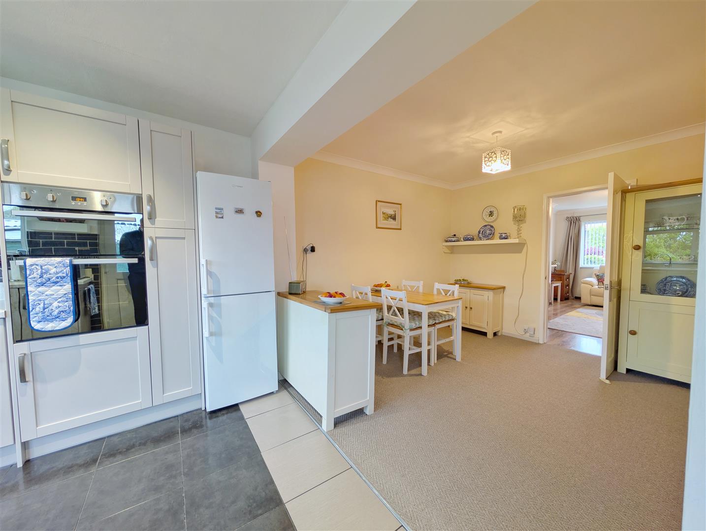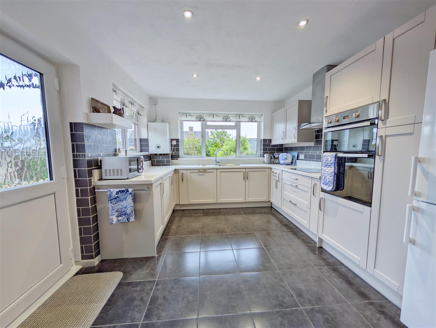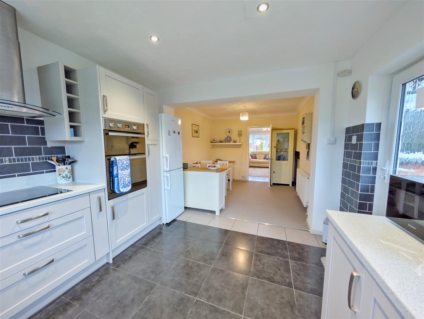 Kitchen/ Diner - 6.93m x 3.18m (22'09 x 10'05) - A superb open plan space with a newly fitted kitchen, comprising a range of base, wall and drawer mounted units with rolled edge worktops, single bowl single drainer sink unit with mixer tap, integrated dishwasher and washing machine, four ring electric hob with extractor hood above and built-in double ovens, with space for fridge freezer. Tiled flooring, part tiled walls, inset ceiling spotlights and new Worcester combination boiler. Dual aspect UPVC double glazed windows and door to side. Open through to dining area with radiator, power points and coving.