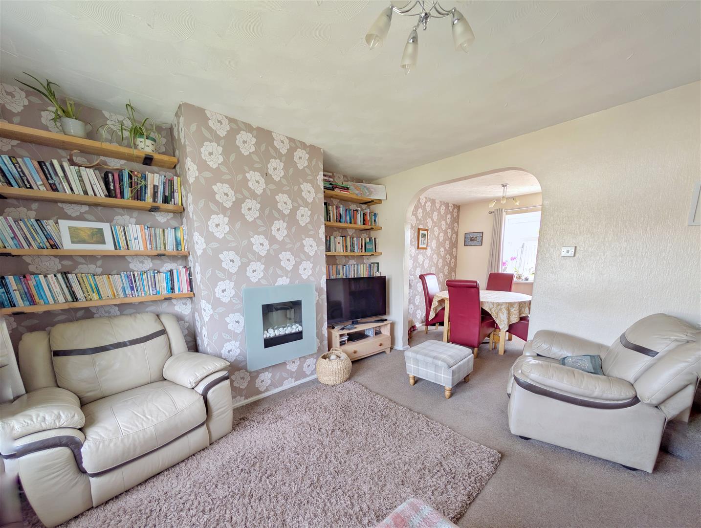 Lounge - 4.14m x 3.61m (13'07 x 11'10) - A well proportioned reception room with front aspect double glazed UPVC window, radiator, power points, television point and electric fireplace. Archway opening through to: