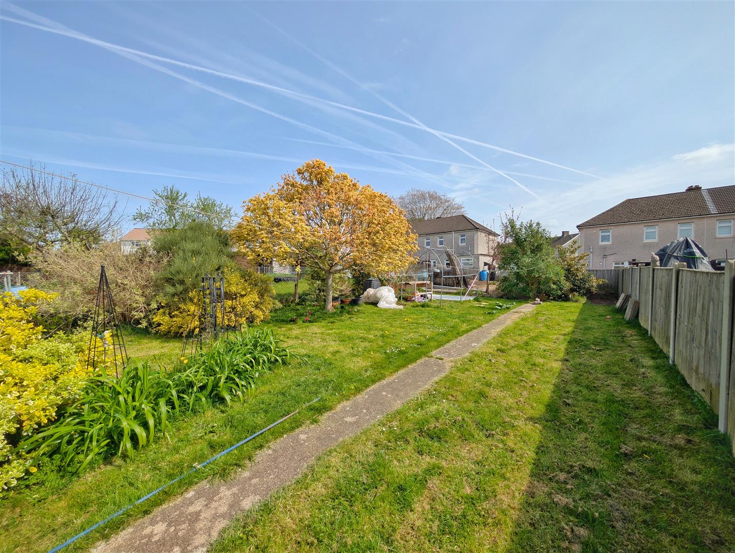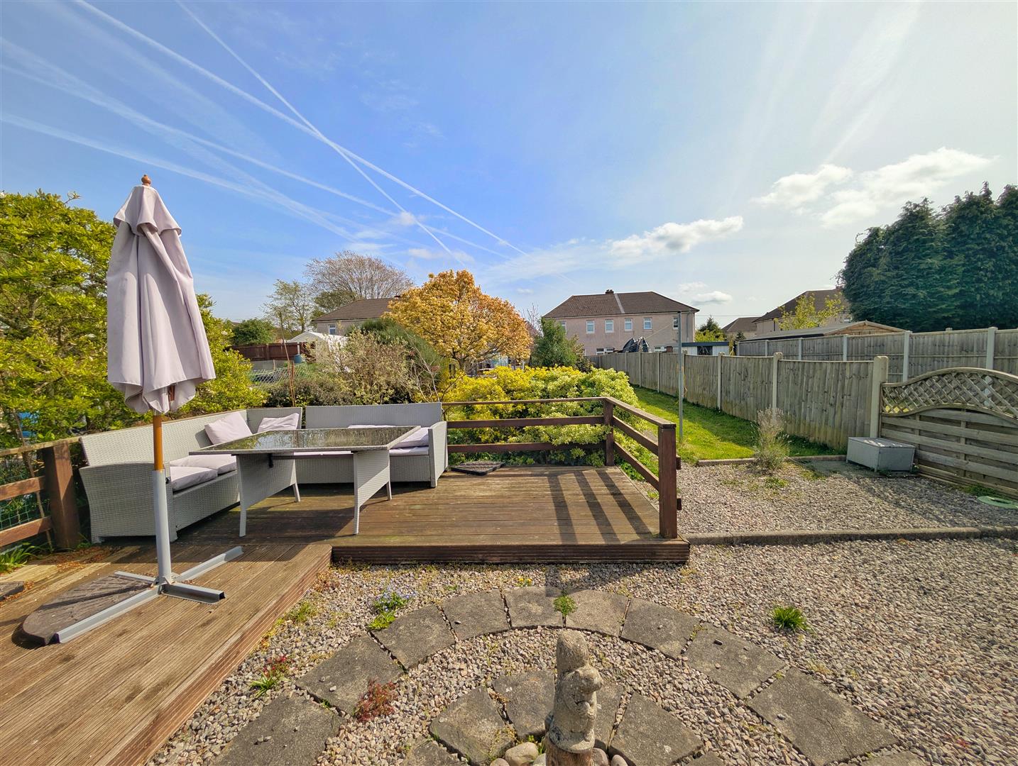 The remainder of the garden is mainly laid to lawn with mature trees, shrubs and borders, offering a pleasant and private outdoor space.