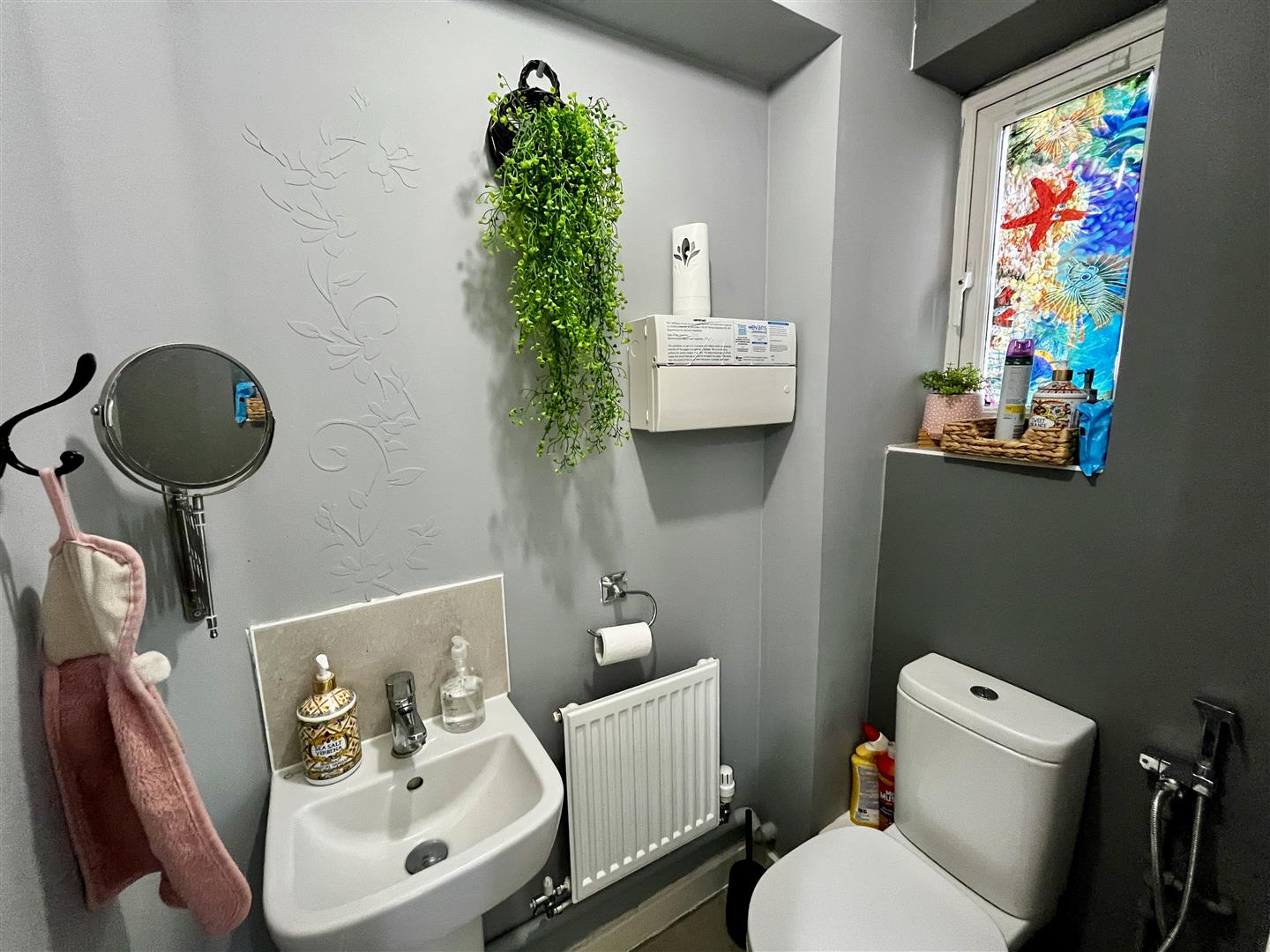 Cloakroom - 1.40m x 0.91m (4'07 x 3'00) - Close coupled w.c., radiator, sink with tap over, fuse box, front aspect upvc double glazed frosted window.