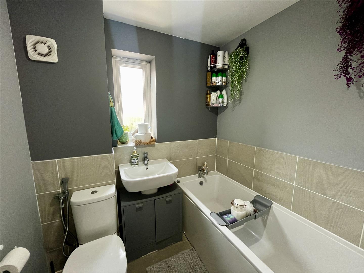 Bathroom - 2.18m x 1.93m (7'02 x 6'04) - Panelled bath with taps over, sink with tap over, close coupled W.C, radiator, extractor fan.