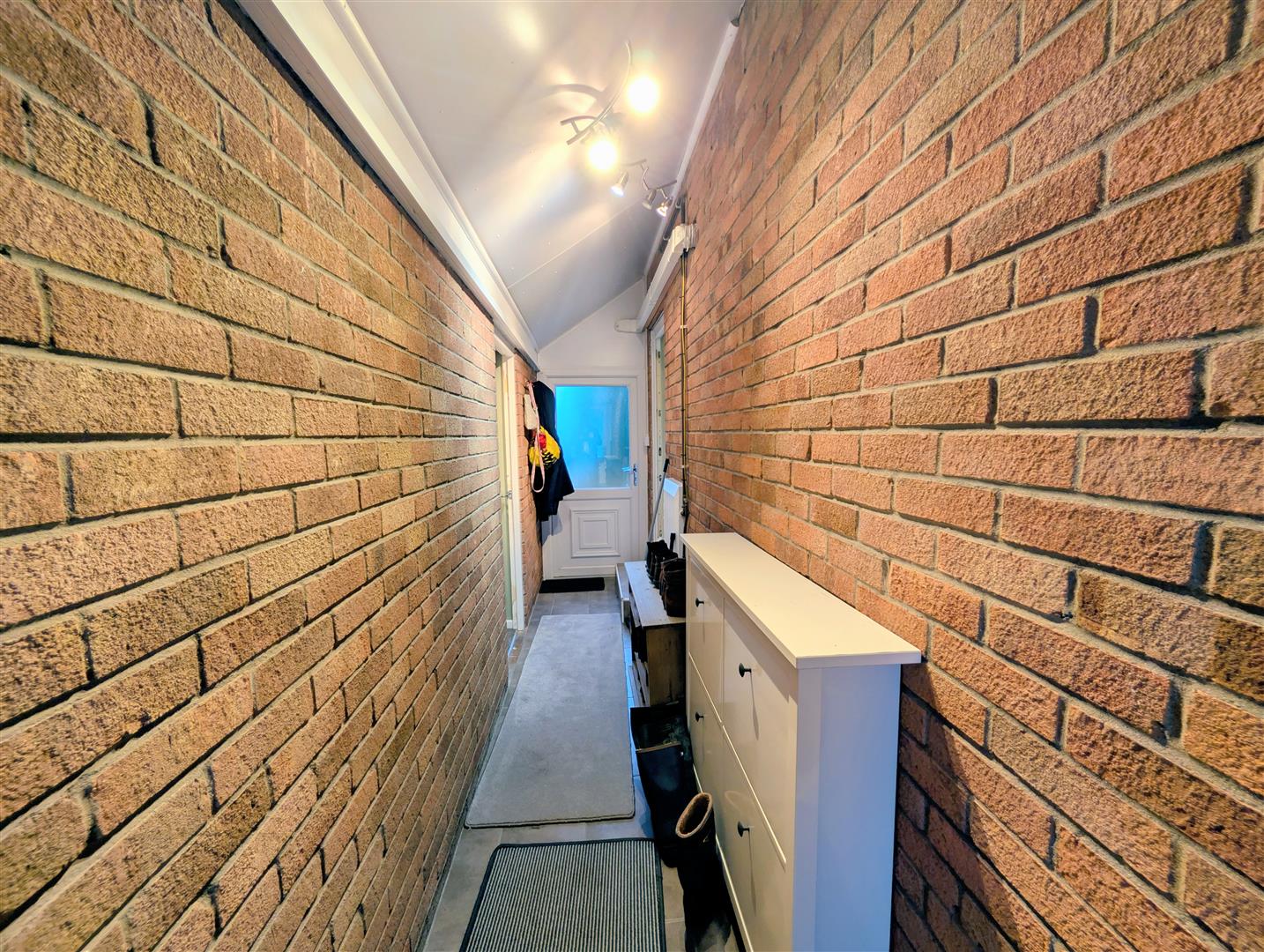 Covered Lean To - Tiled flooring. Front and rear aspect double glazed UPVC doors. Ample space for coat and shoe storage. Access to garden and utility/playroom.