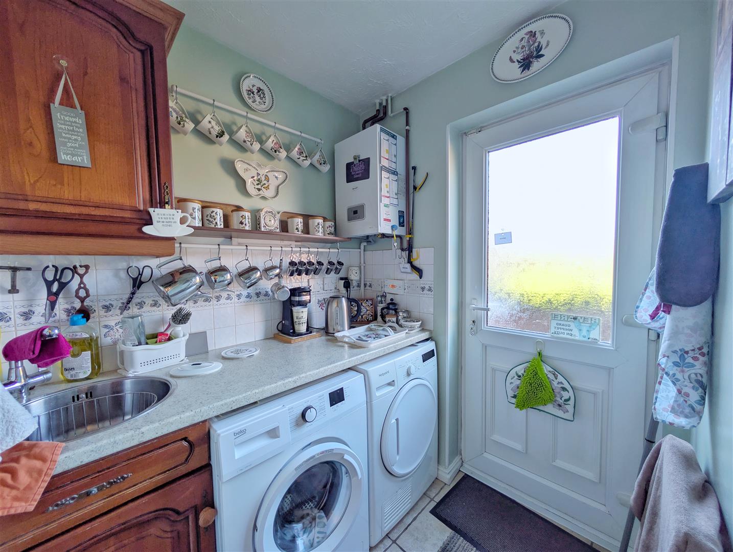 Utility Room - 1.70m x 1.60m (5'07 x 5'03) - With base units, rolled edge worktops, stainless steel sink unit, space and plumbing for washing machine, space for tumble dryer, wall mounted Glow Worm boiler, power points and rear aspect UPVC double glazed frosted window.
