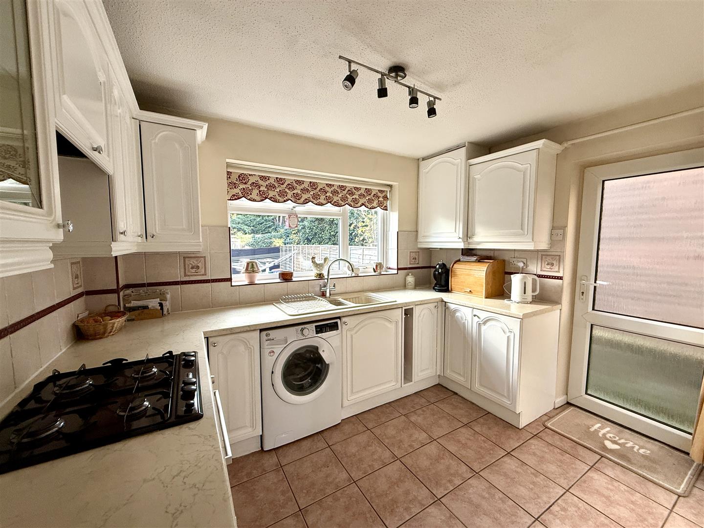 Kitchen - 3.38m x 3.07m (11'01 x 10'01) - Rear aspect double glazed upvc window, range of wall, drawer and base mounted units, built in oven, four gas ring hob with extractor fan over, plastic one and half bowl sink and drainer unit with mixer tap over, space for washing machine, built in fridge/freezer, power points, side aspect upvc double glazed frosted door giving access out to the garden, understairs large cupboard space, radiator.