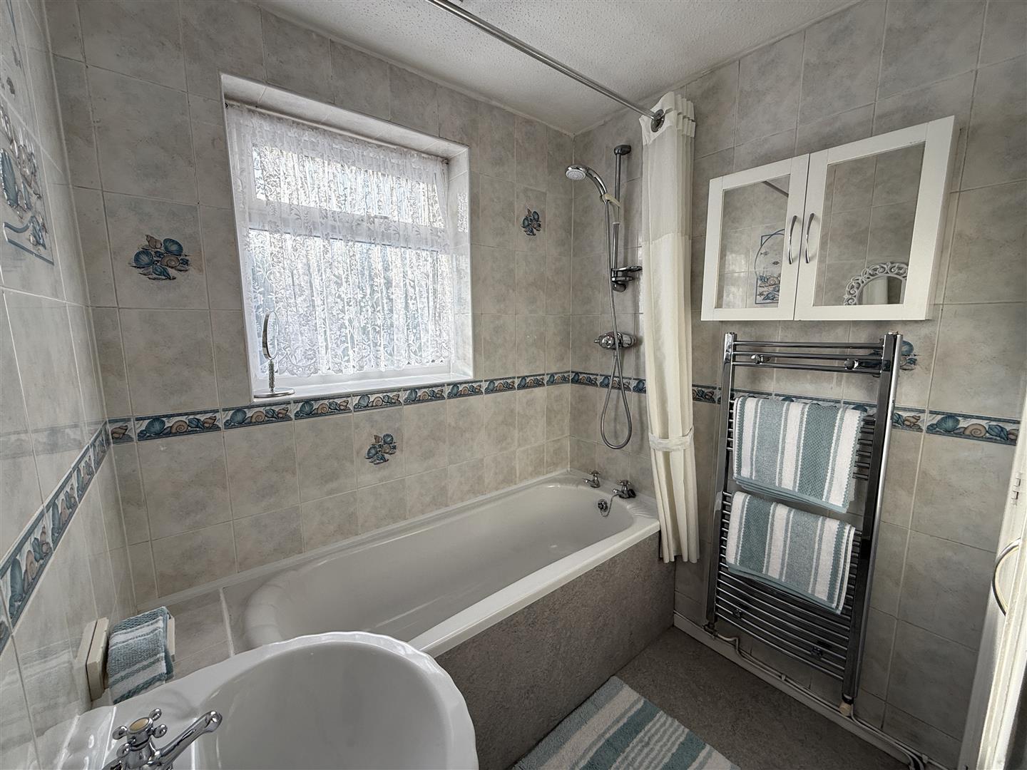Bathroom - 1.83m x 2.26m (6'00 x 7'05) - Rear aspect double glazed upvc frosted window, panelled bath with bath taps over with shower attachment above, sink with tap over, heated towel rail, airing cupboard space and a radiator within.