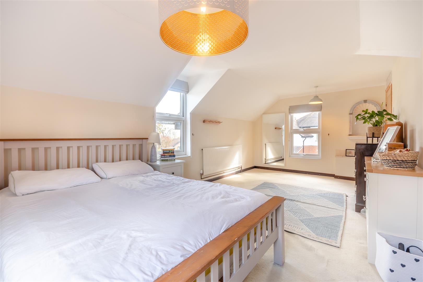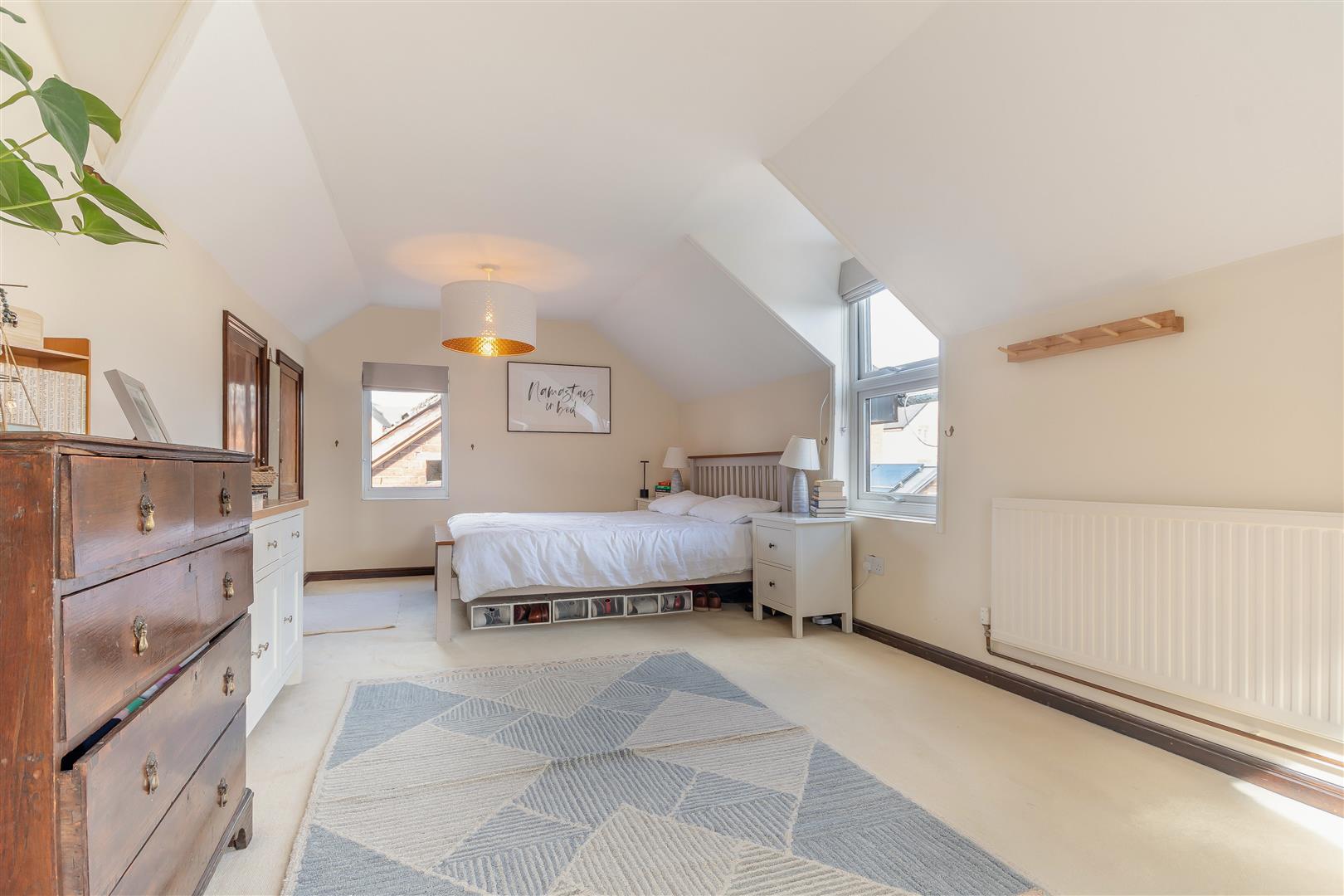 Bedroom 1 - 6.10m x 3.05m (20'83 x 10'46) - Radiator, power points, two sets of built-in wardrobes with hanging space and shelving, triple aspect UPVC windows to the front rear and side.